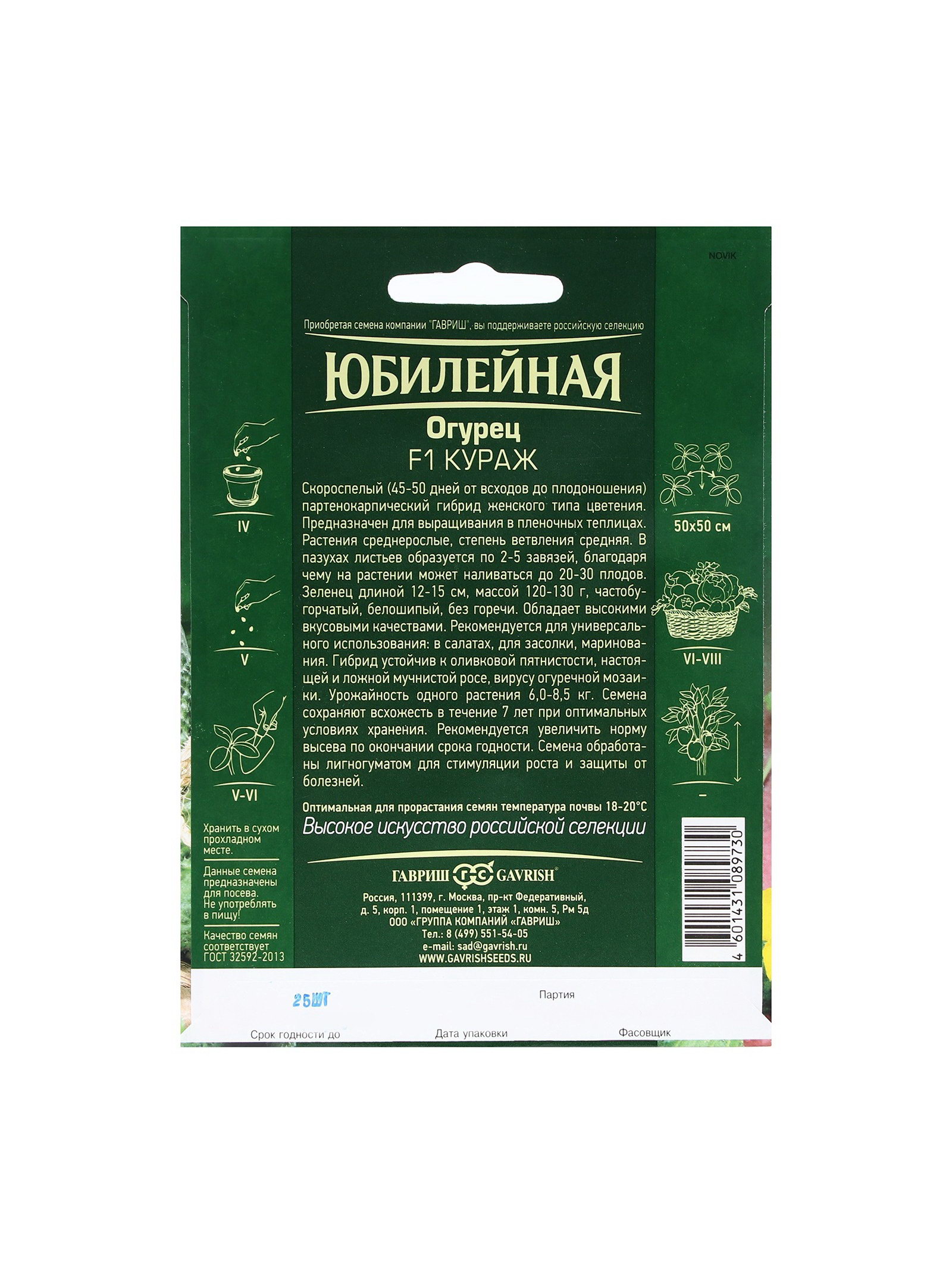Семена Огурец "Кураж F1", серия Юбилейный, 25 шт., Гавриш, Россия