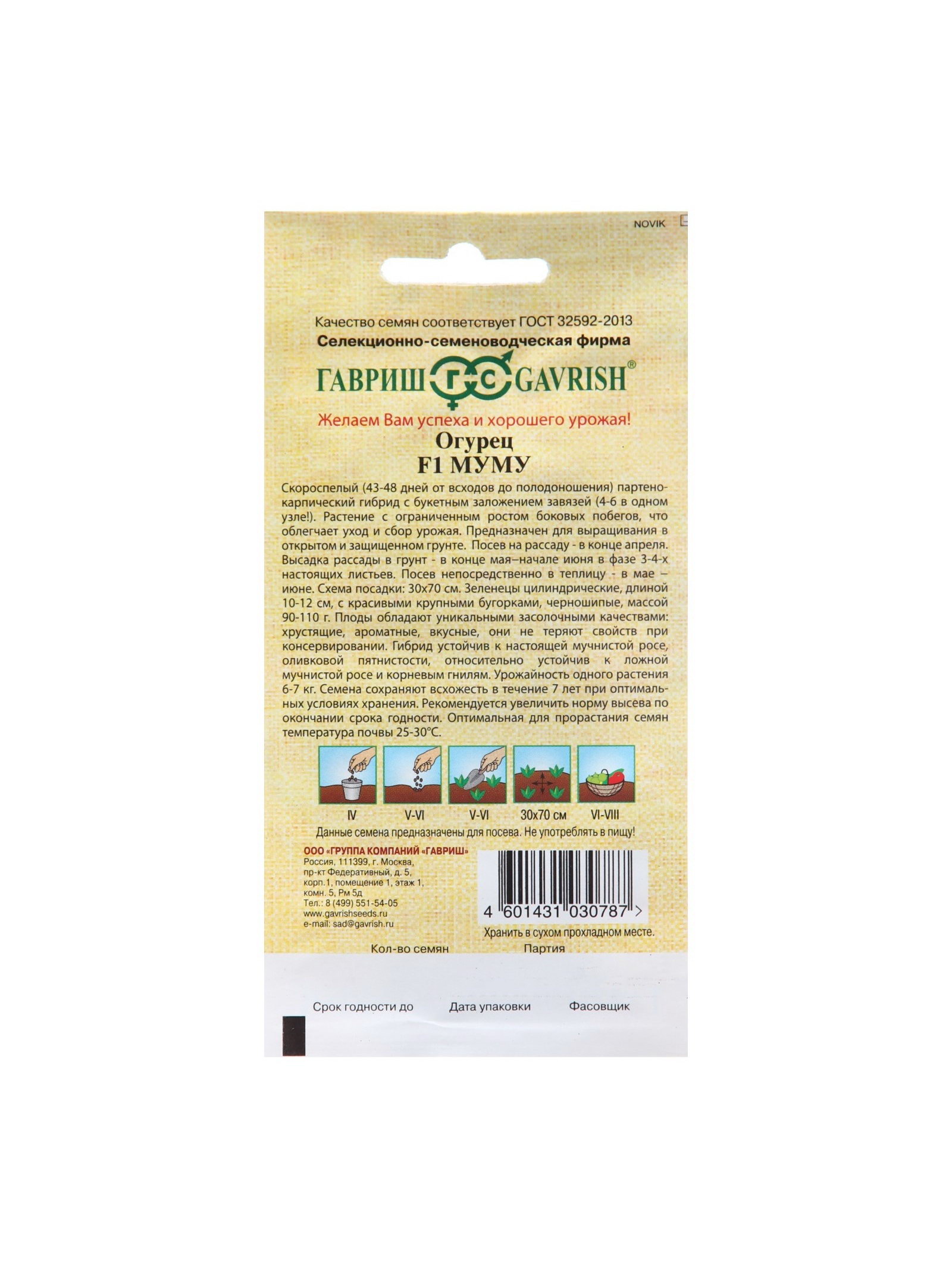 Семена Огурец "Муму", F1, корнишон, 10 шт., Гавриш, Россия