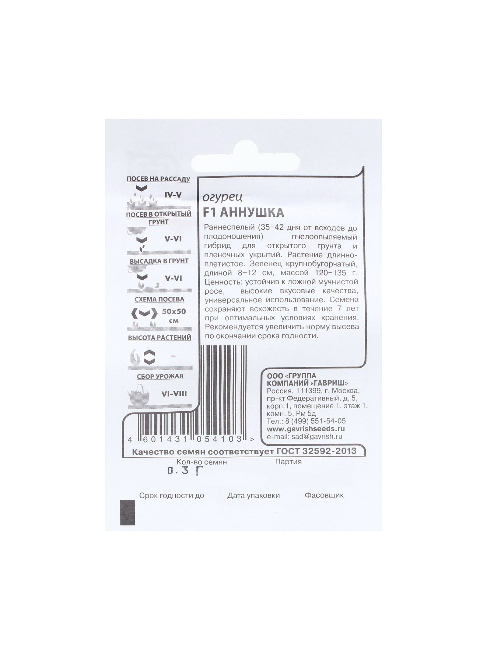 Семена Огурец "Аннушка", F1, б/п, 0.3 г, Гавриш, Россия