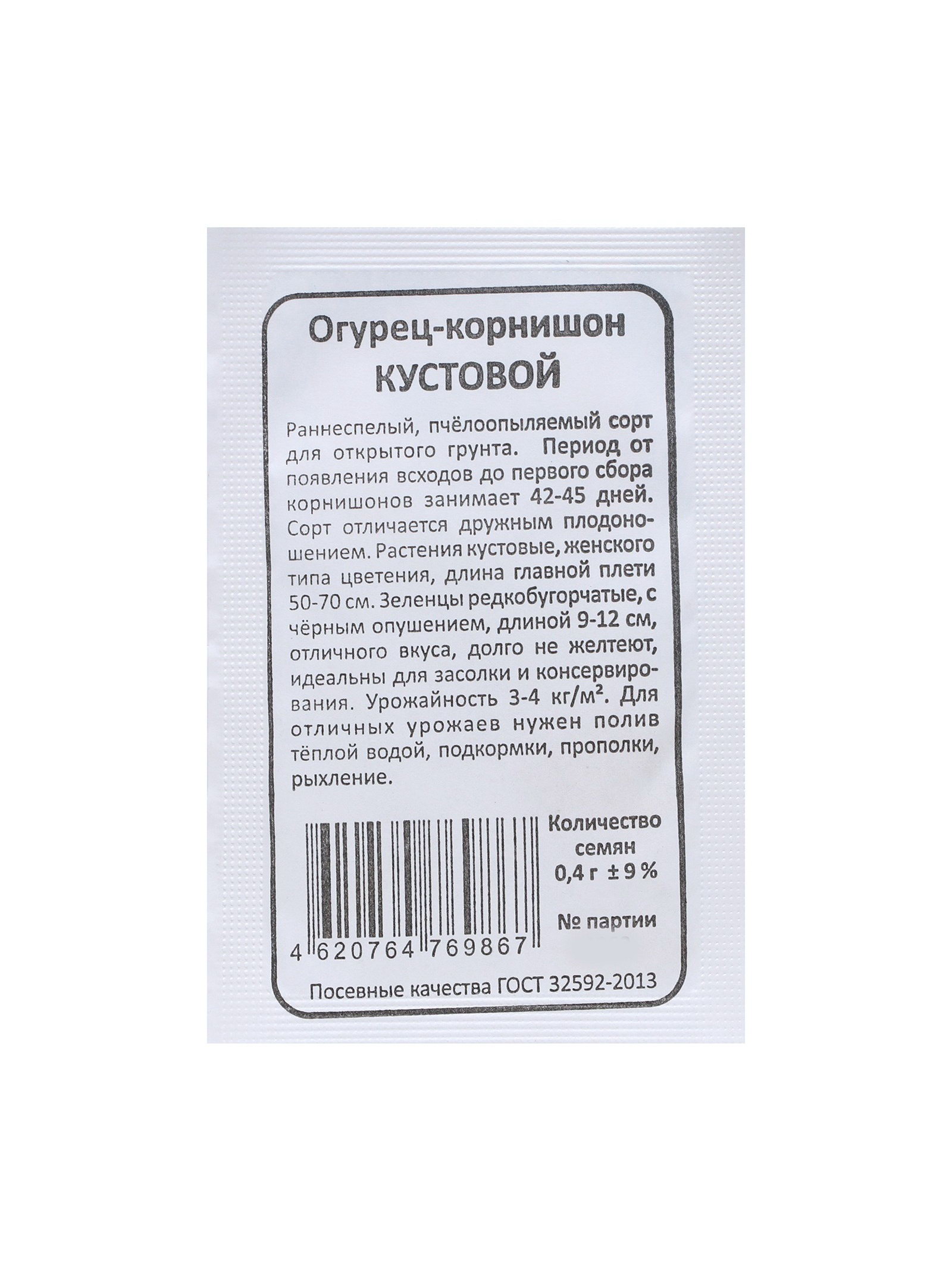 Семена Огурец "Кустовой", б/п, 0.4 г, Уральский Дачник, Россия