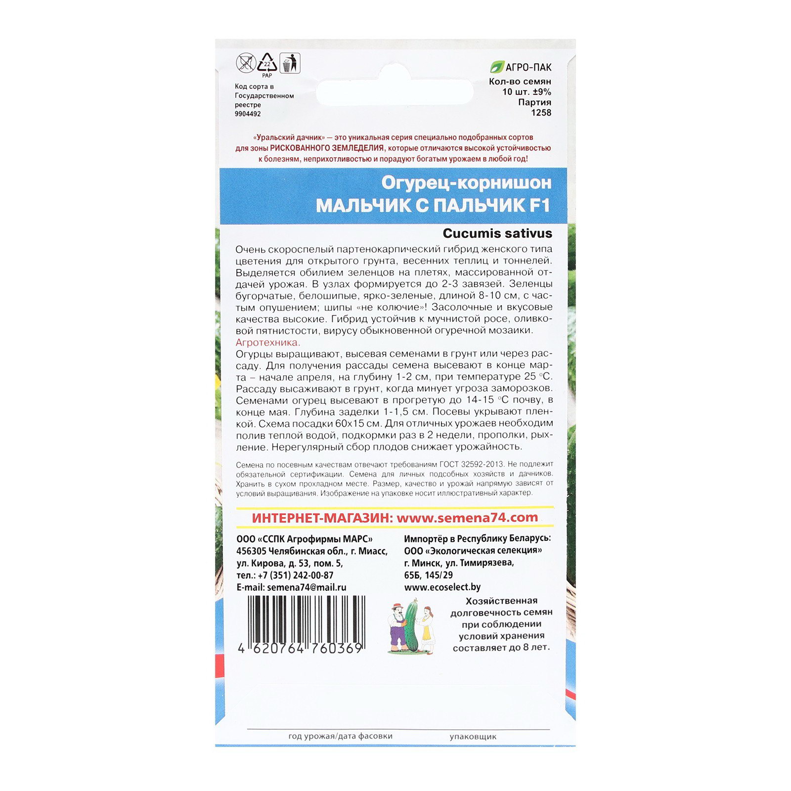 Семена Огурец "Мальчик с Пальчик", корнишон, F1, 10 шт, Уральский Дачник, Россия