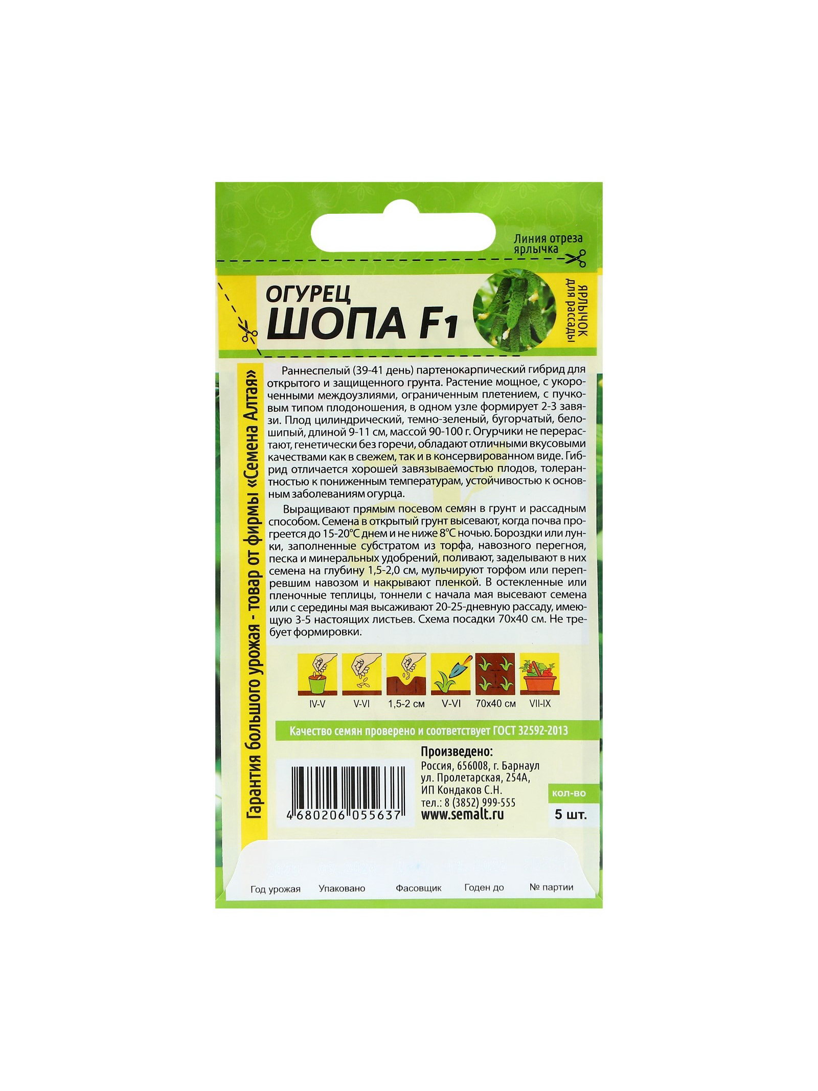 Семена Огурец "Шопа", Сем. Алт, ц/п, 5 шт., Семена Алтая, Россия