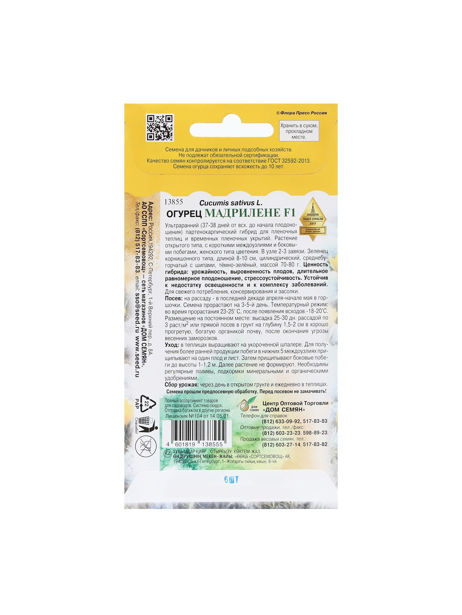 Сроки созревания: Ранний, Ранний ( до 48 дней) Размер упаковки: 8 x 0.1 x 15 см. Ампельные: Да Вьющиеся (лианы): Да Бугорчатые: Нет Гладкие: Нет Размер: Корнишоны (до 12 см) см tnved: 1209918000 tnved: 1209918000 Агрономический срок годности, лет: 7 Температурное ограничение: Нет Сорт или гибрид: Гибрид F1 Особенности выращивания: Универсальный Вид: Партенокарпические Сорт: F1 Cуперранний (38-40 дней), высокоурожайный гибрид. Плоды крупнобугорчатые, однородной цилиндрической формы, длиной 9-11 см, без горечи, не перерастают долгое время, устойчив к перепаду температур. Рекомендуется для выращивания в теплицах, в любых климатических условиях, устойчив к ряду болезней. Предназначен для потребления в свежем виде и переработки. | ||