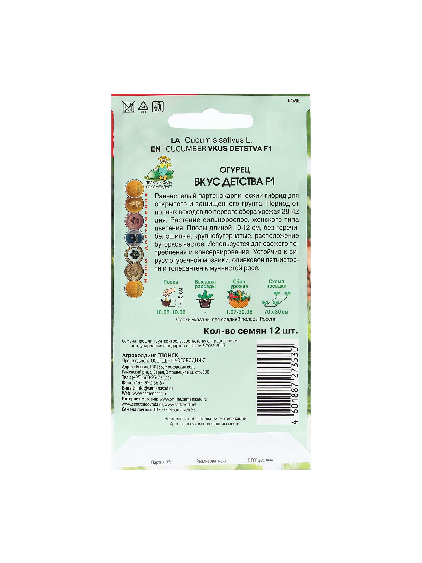 Семена Огурец "Вкус детства F1" 12 шт, ПОИСК, Китай