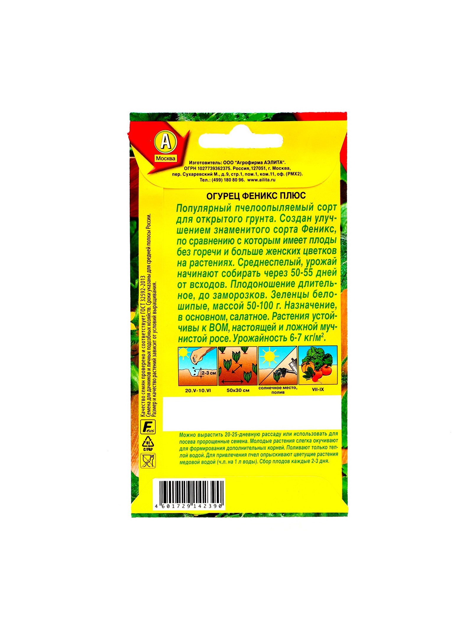 Семена Огурец Феникс плюс Пч Ц/П 20шт, Агрофирма АЭЛИТА, Россия