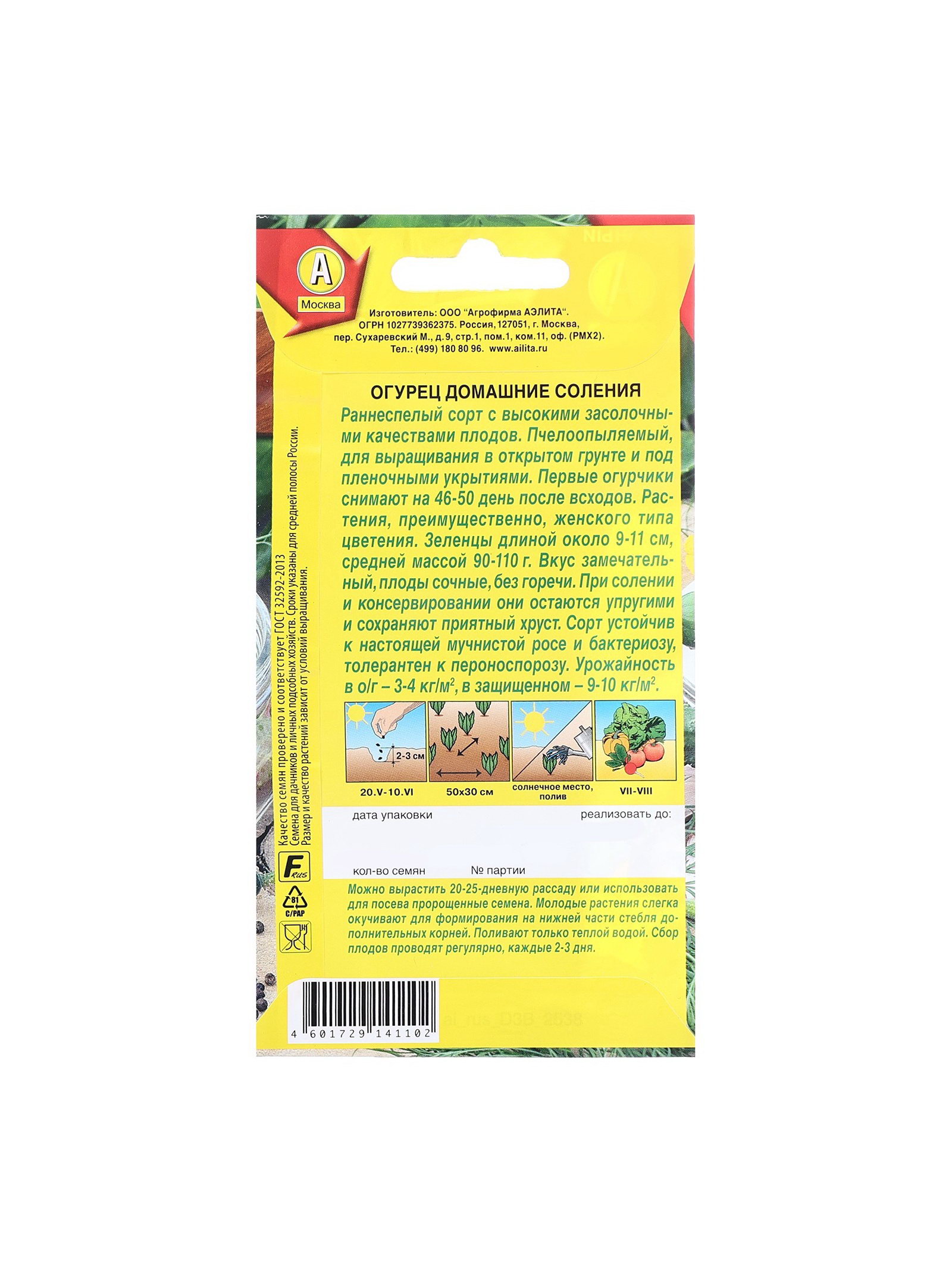 Семена Огурец Домашние соления Пч Ц/П 20шт, Агрофирма АЭЛИТА, Россия