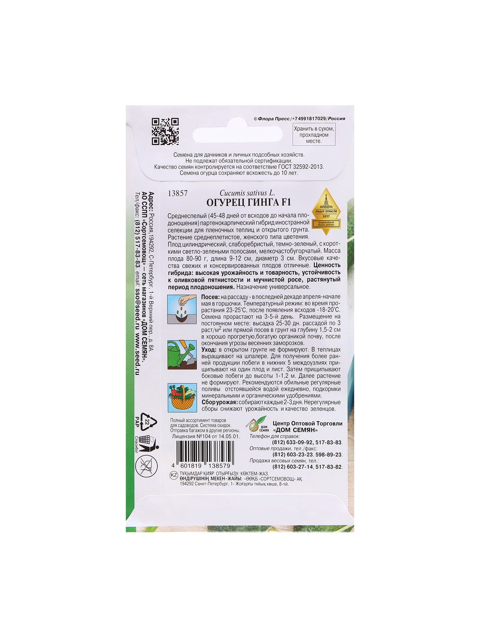 Семена Огурец "Гинга F1", 6 шт, Дом семян, Германия