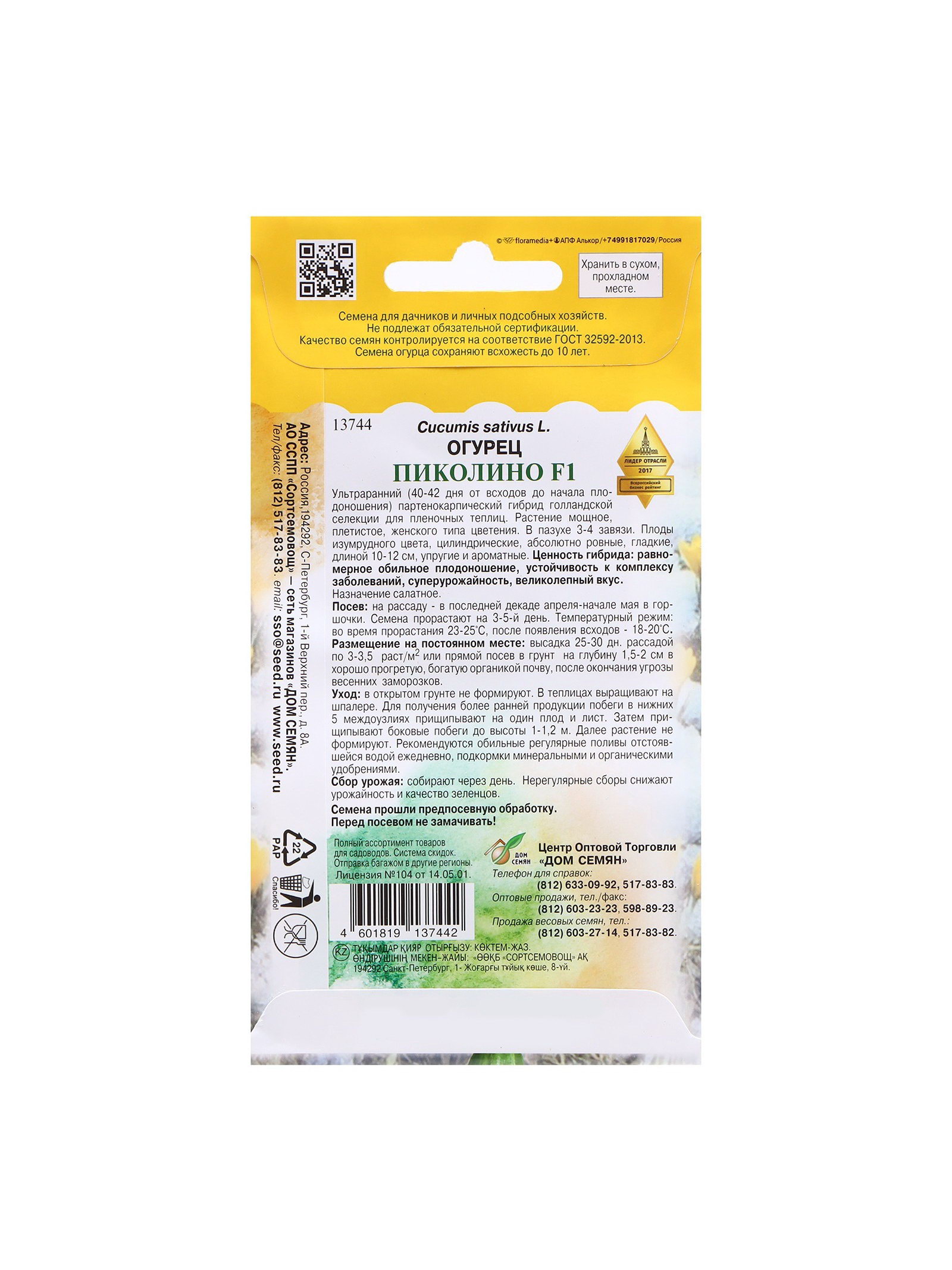 Семена Огурец "Пиколино F1", 6 шт, Дом семян, Россия