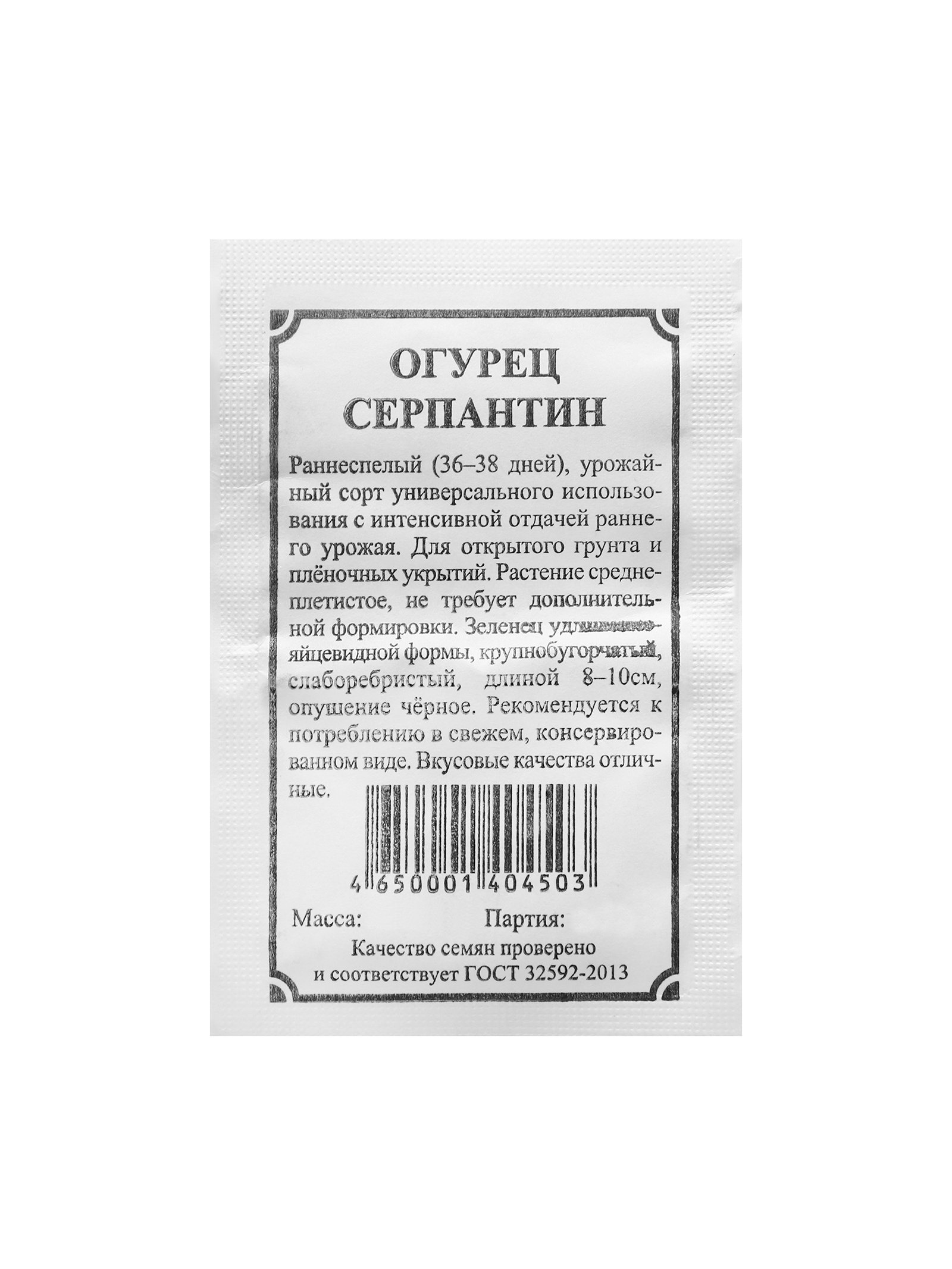Семена Огурец "Серпантин", 1 г, Плазмас, Россия