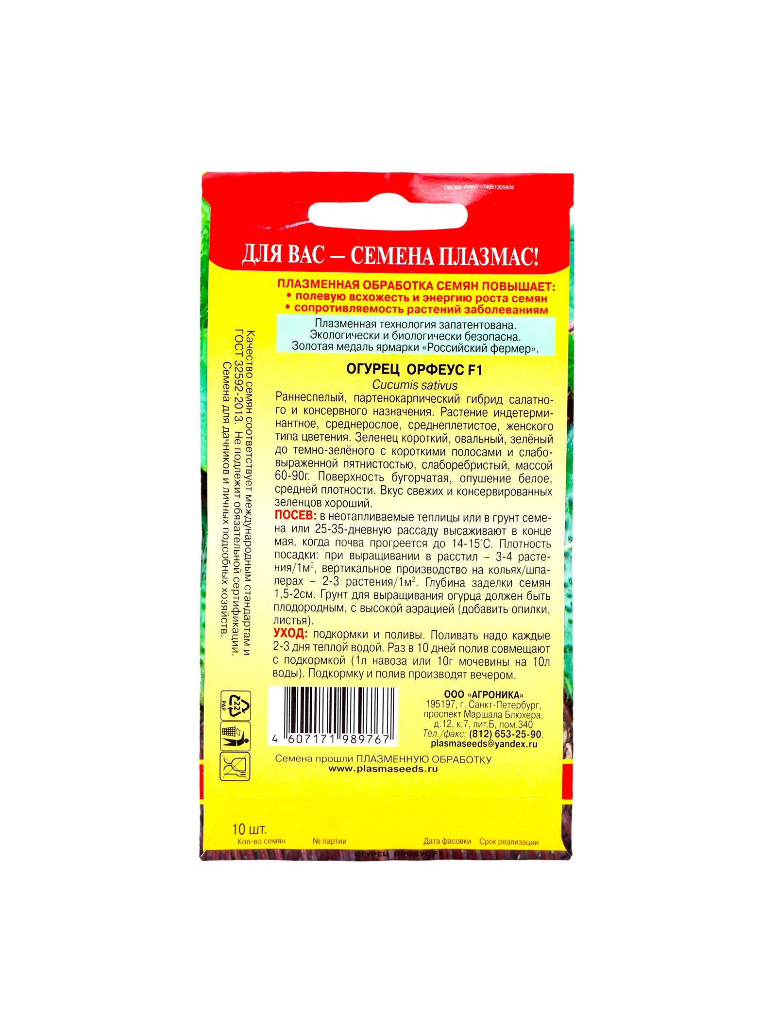 Семена Огурец "Орфеус", F1, 10 шт, Плазмас, Россия