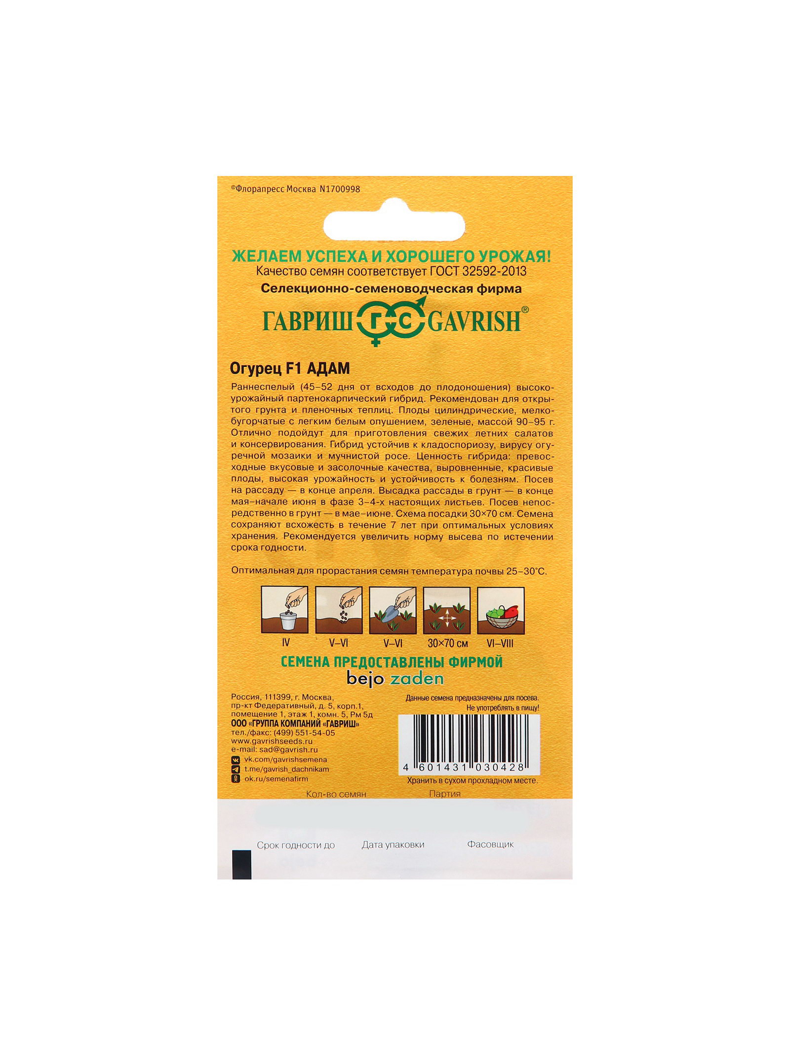 Семена Огурец "Адам", F1, 5 шт., Гавриш, Россия