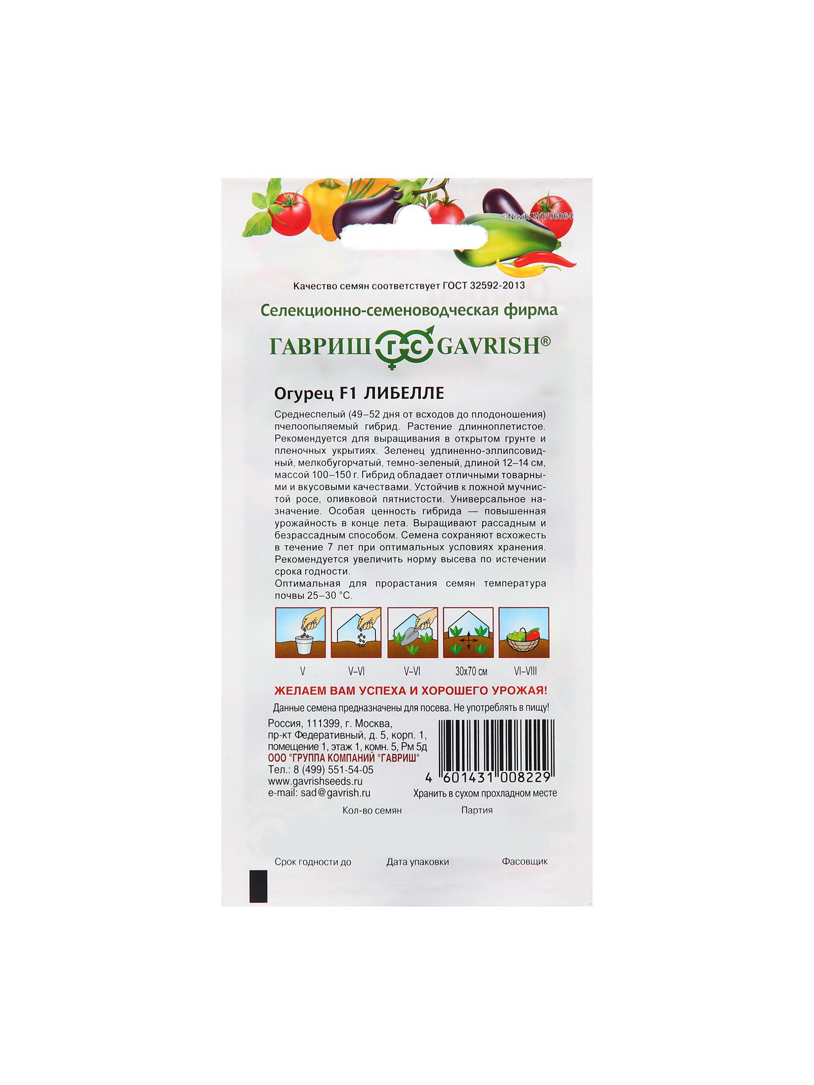 Семена Огурец "Либелле", F1 0.5 г, Гавриш, Россия