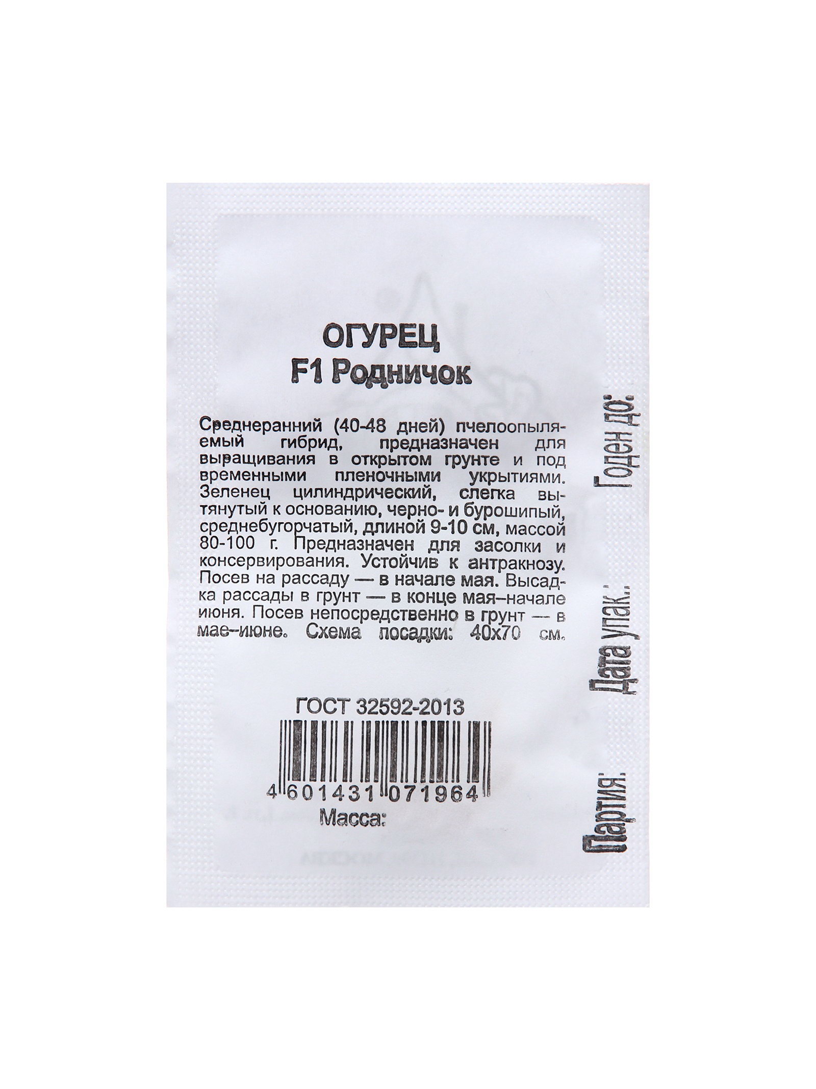 Семена Огурец "Родничок", F1 0.2 г б/п, Гавриш, Россия