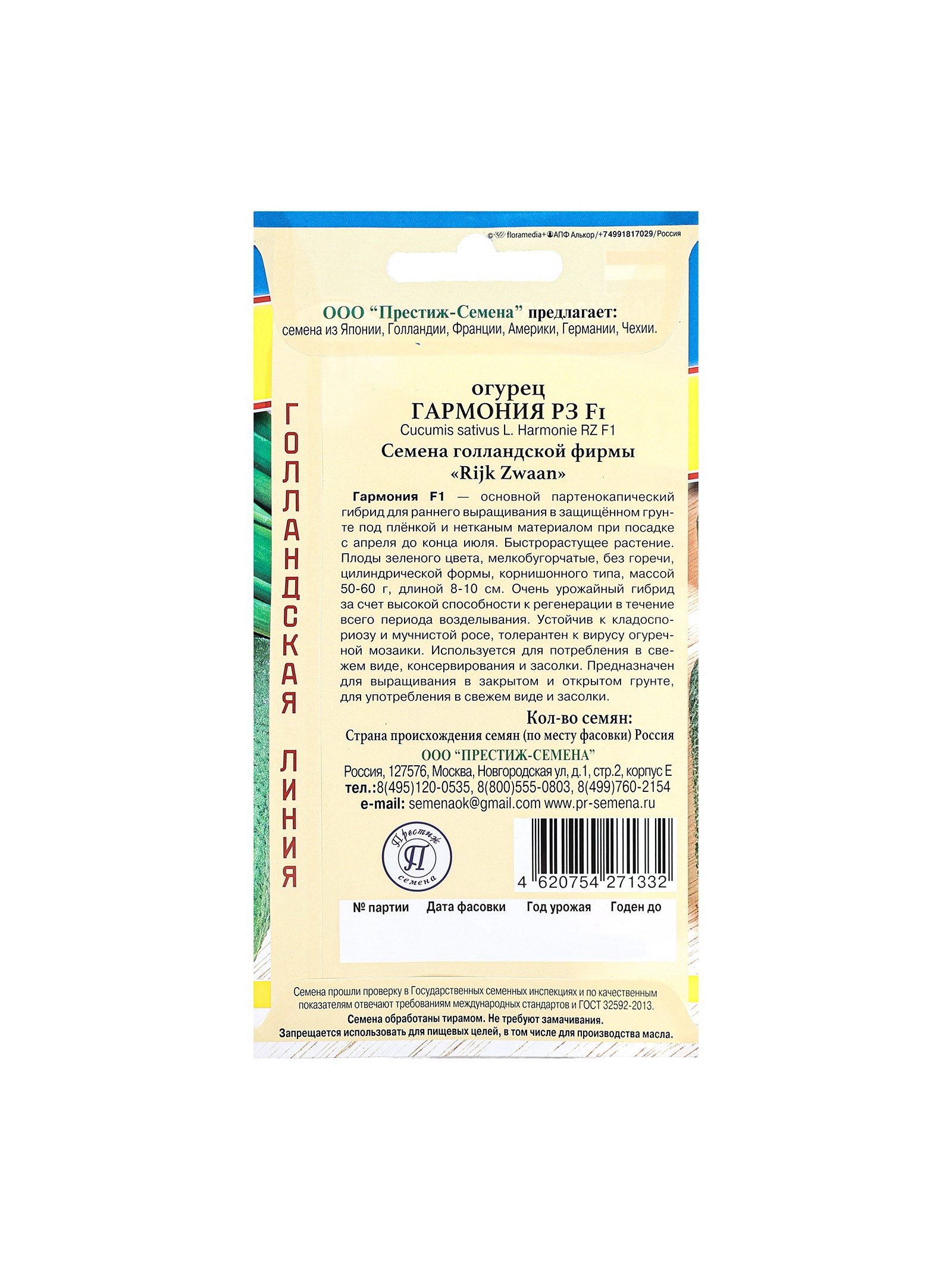 Семена Огурец "Гармония F1", ц/п, 5 шт., Престиж семена, Россия