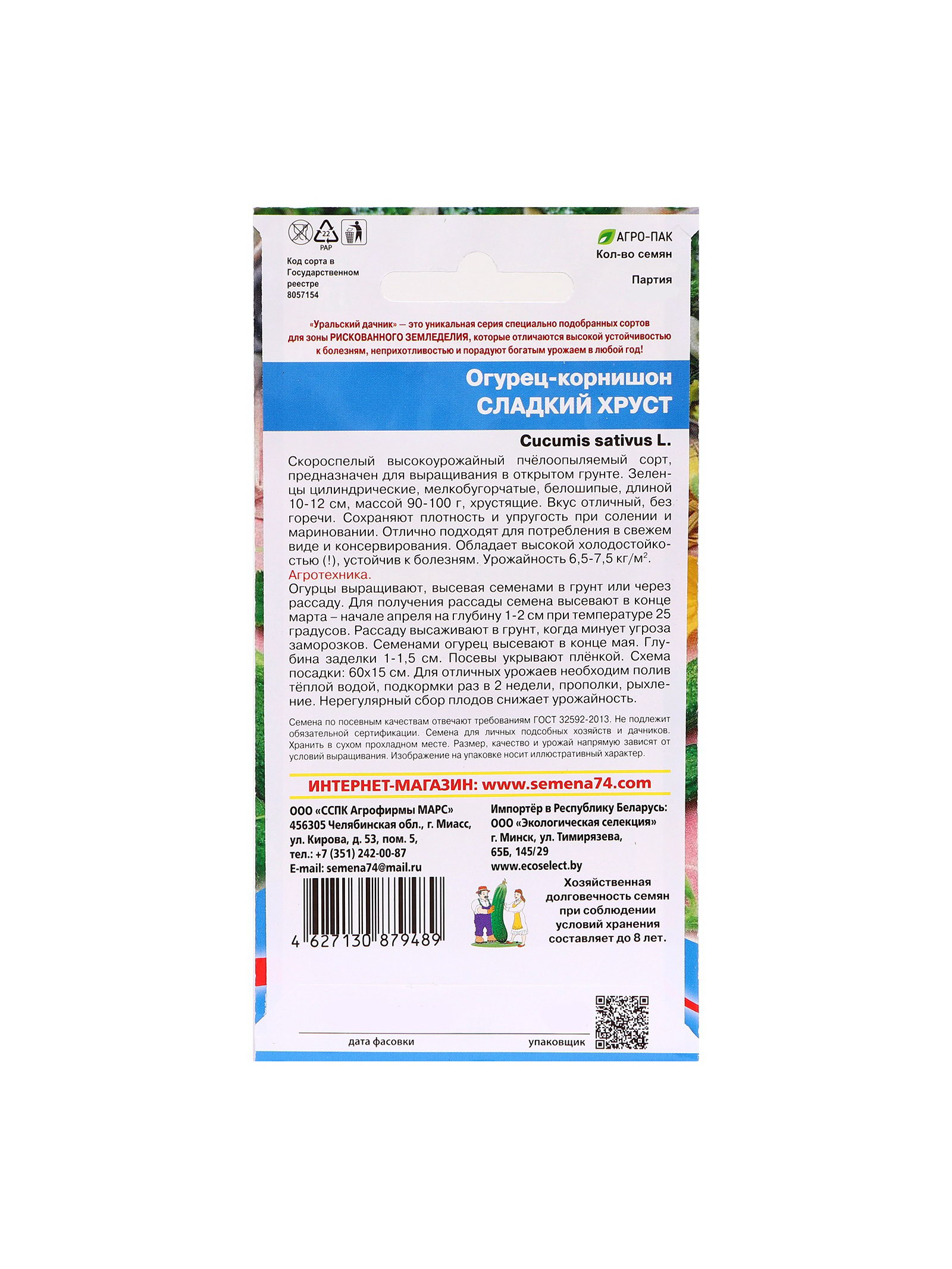 Семена огурец корнишон "Сладкий хруст", 12 шт., Уральский Дачник, Россия