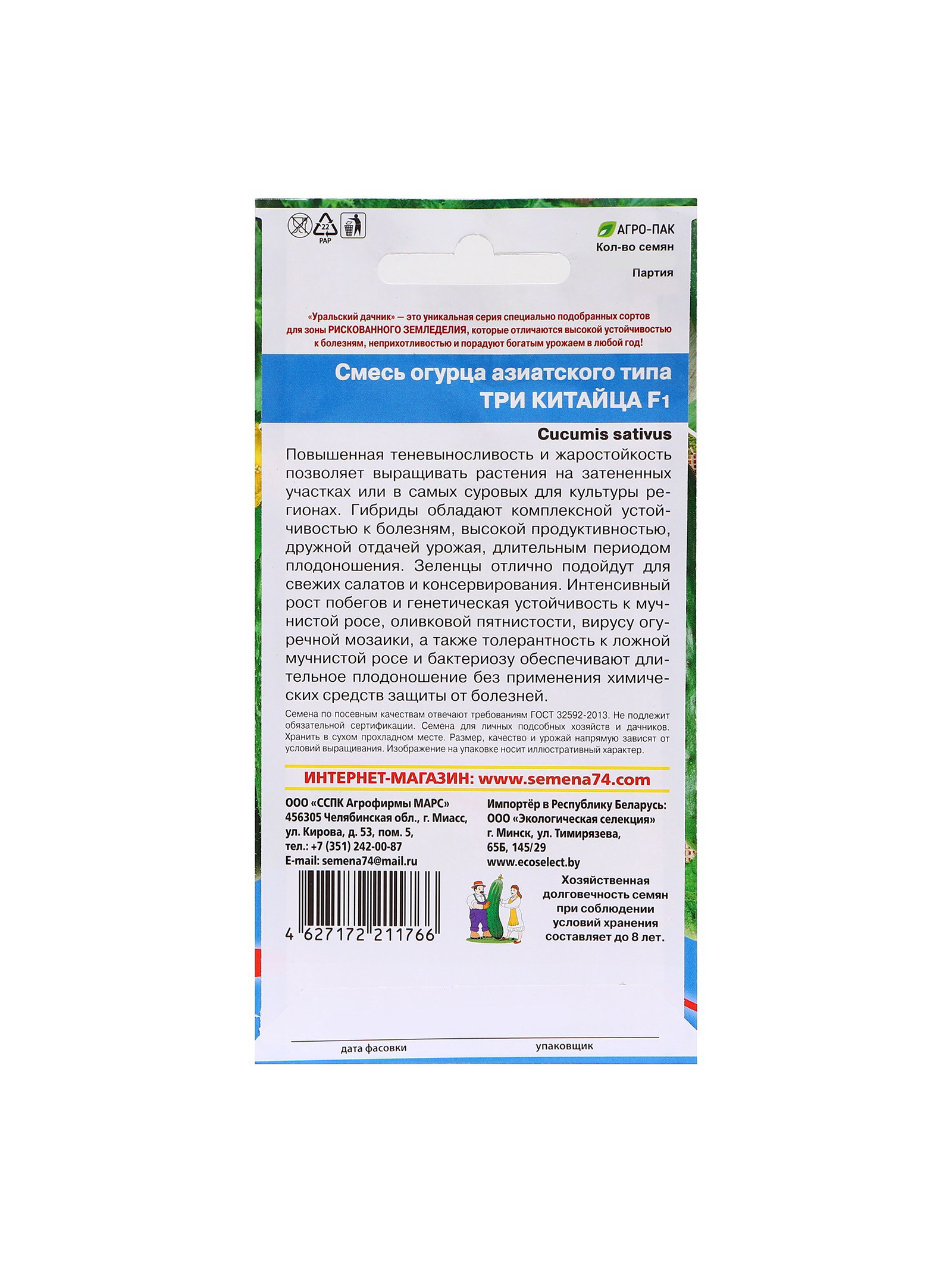 Семена огурец азиатского типа "Три Китайца F1", 10 шт., Уральский Дачник, Россия