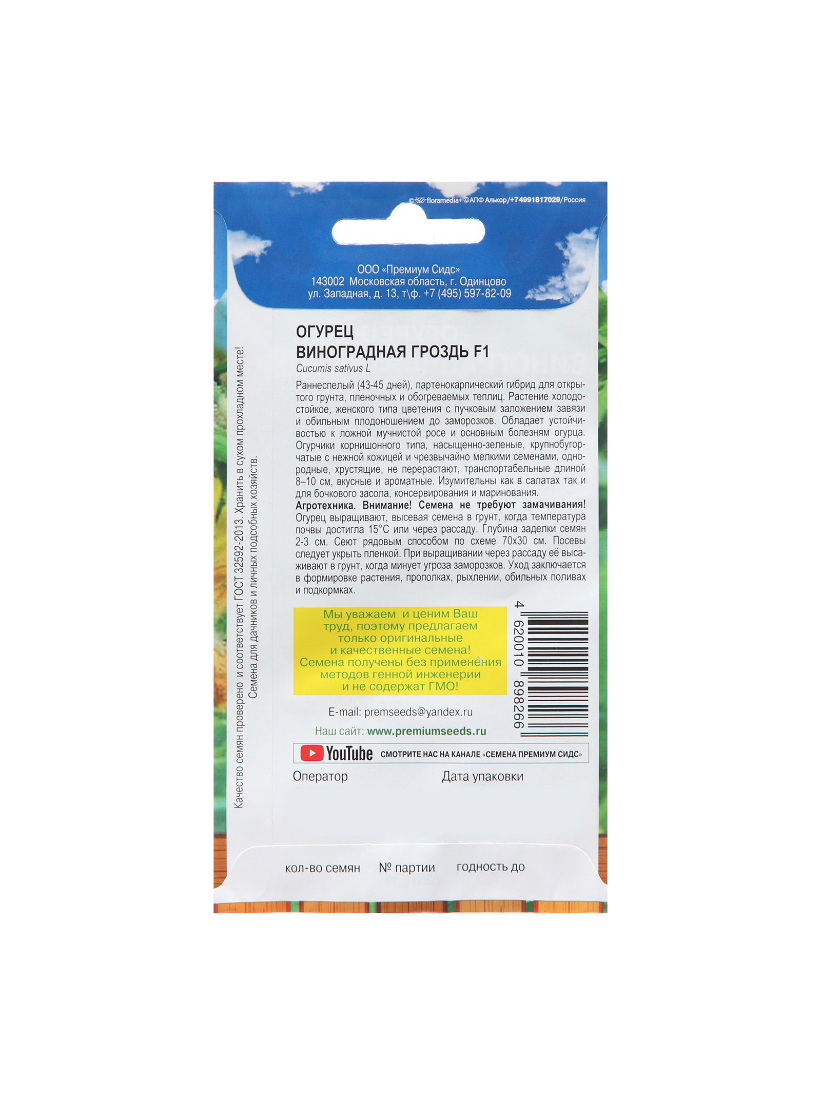 Семена Огурец Виноградная гроздь F1 5 шт., Premium seeds, Россия