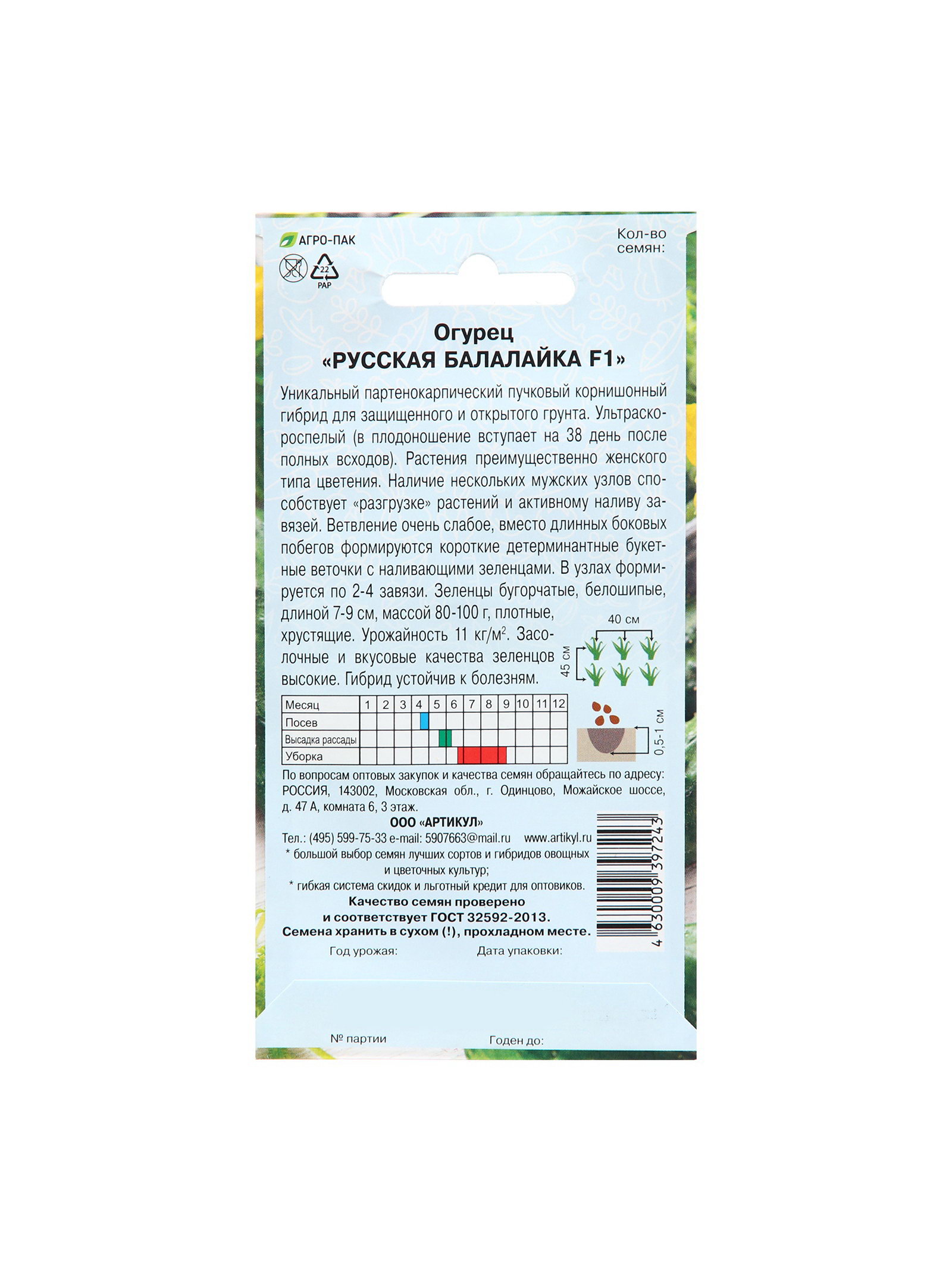 Семена Огурец "Русская Балалайка", F1, 8 шт 1023660, Артикул, Россия