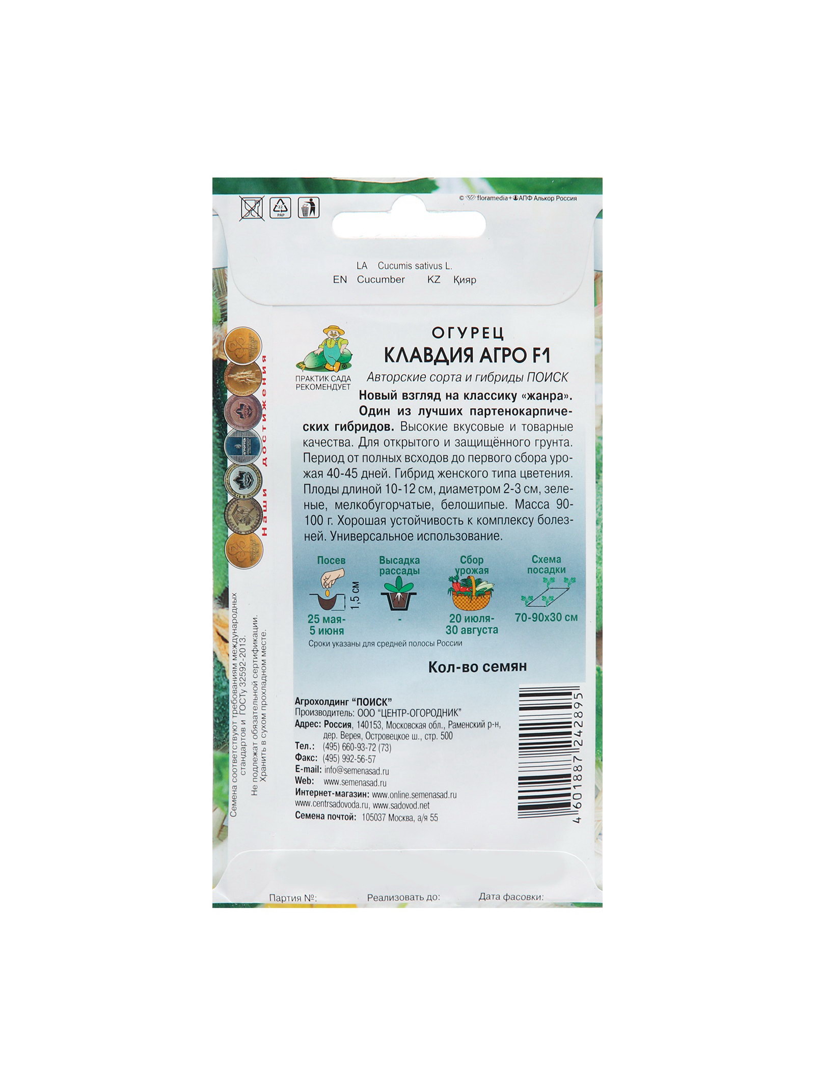 Семена Огурец "Клавдия Агро", F1, 12 шт., "Поиск", ПОИСК, Италия