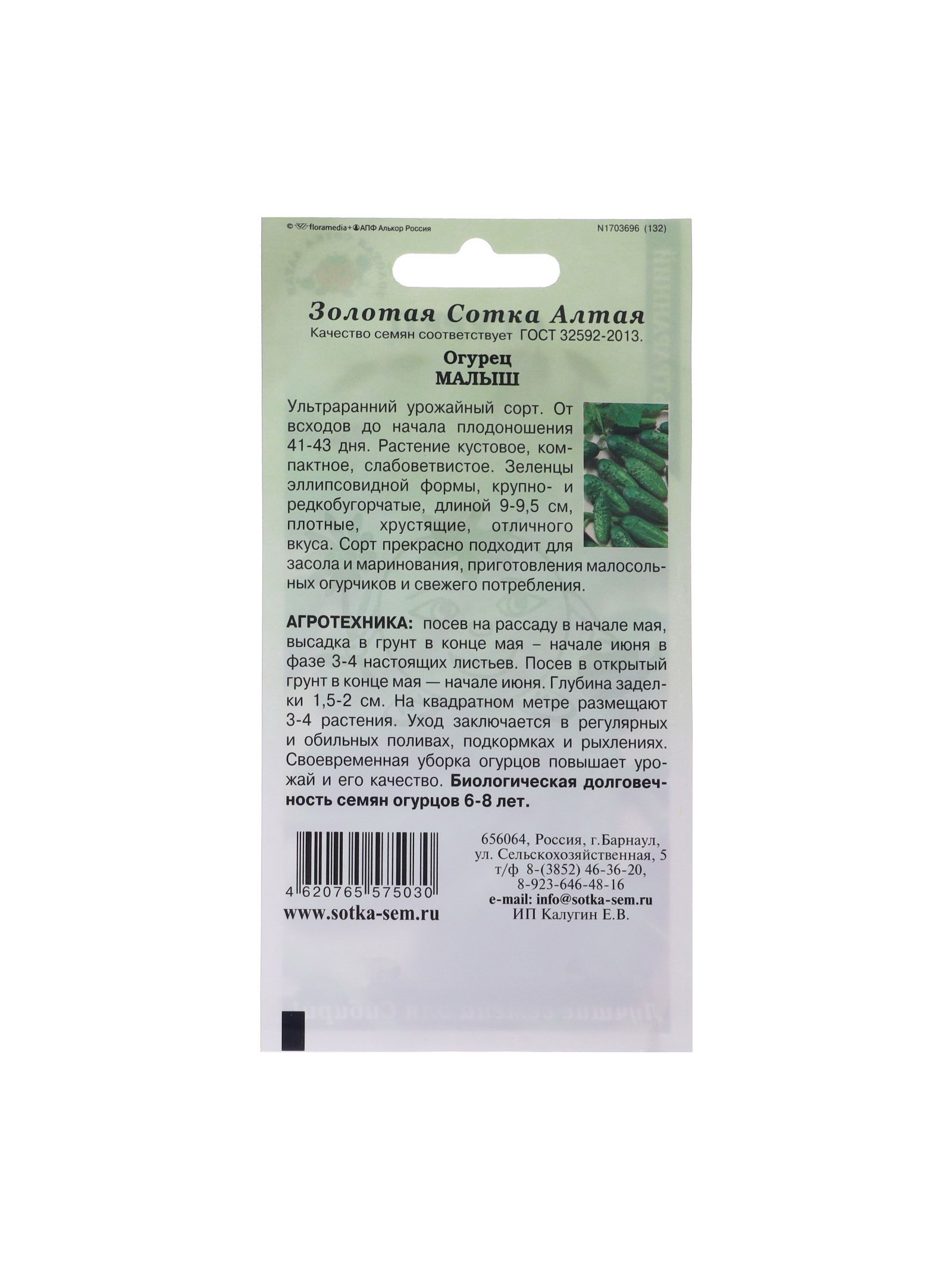 Семена Огурец "Малыш", ультраранний, 0.3 г, Золотая Сотка Алтая, Россия