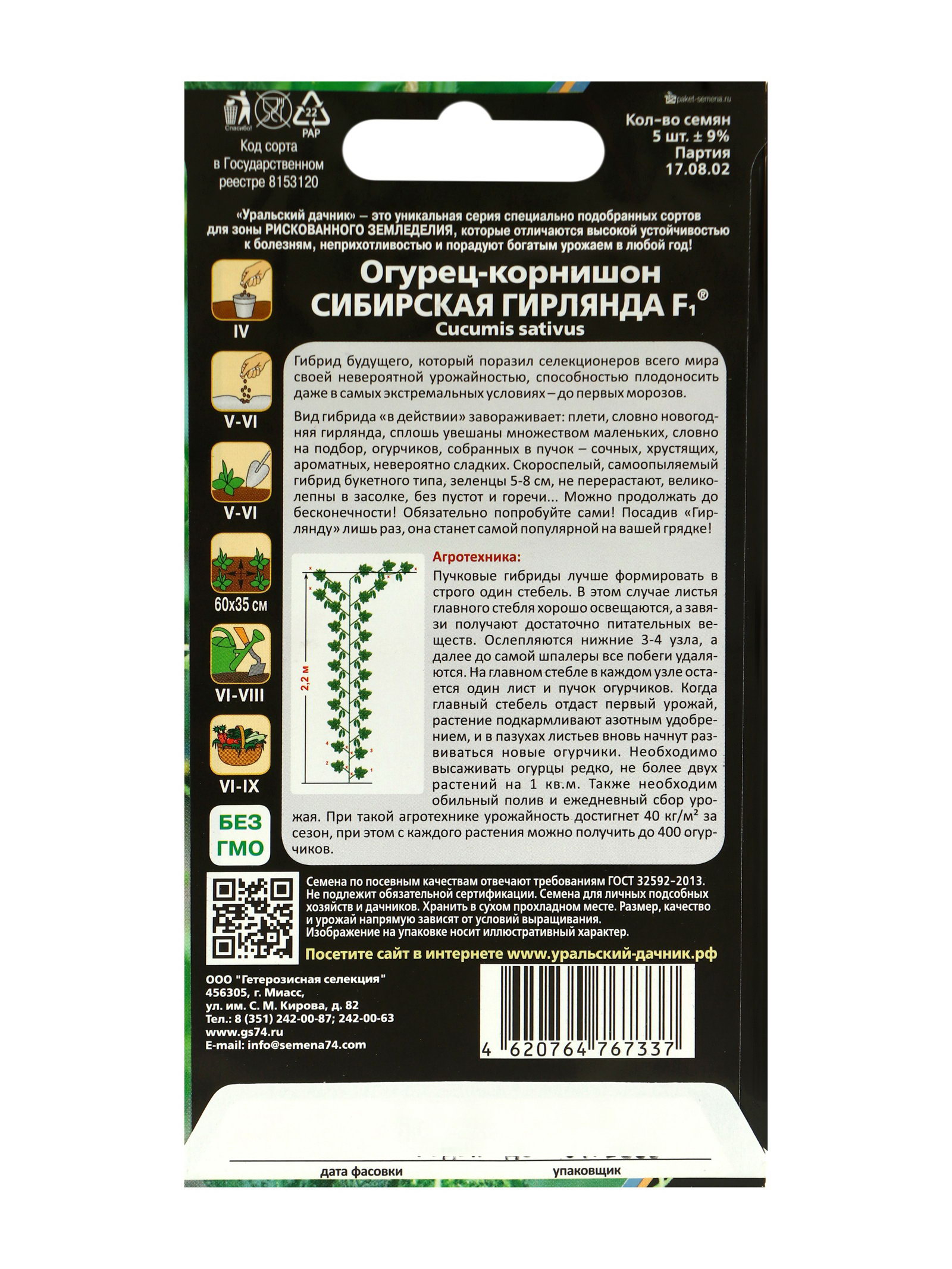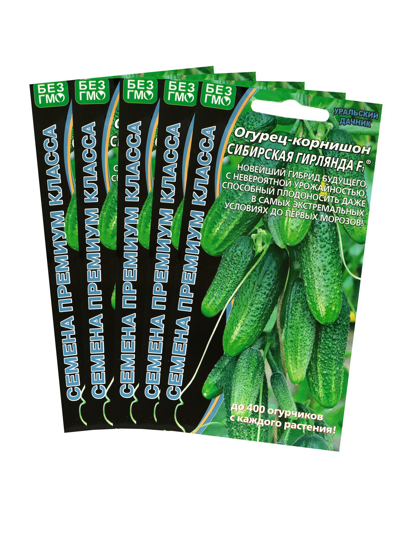 Семена Огурец "Сибирская Гирлянда" F1 скороспелый, партенокарпический, набор 5 шт, Мой выбор, Россия