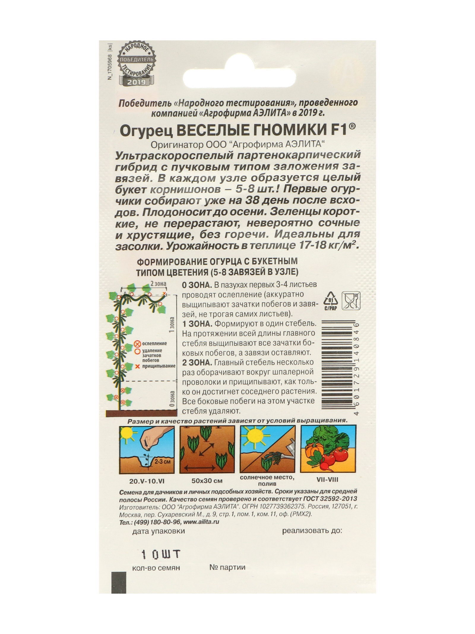 Семена Огурец "Веселые гномики", партенокарпический, набор 5 шт., Мой выбор, Россия