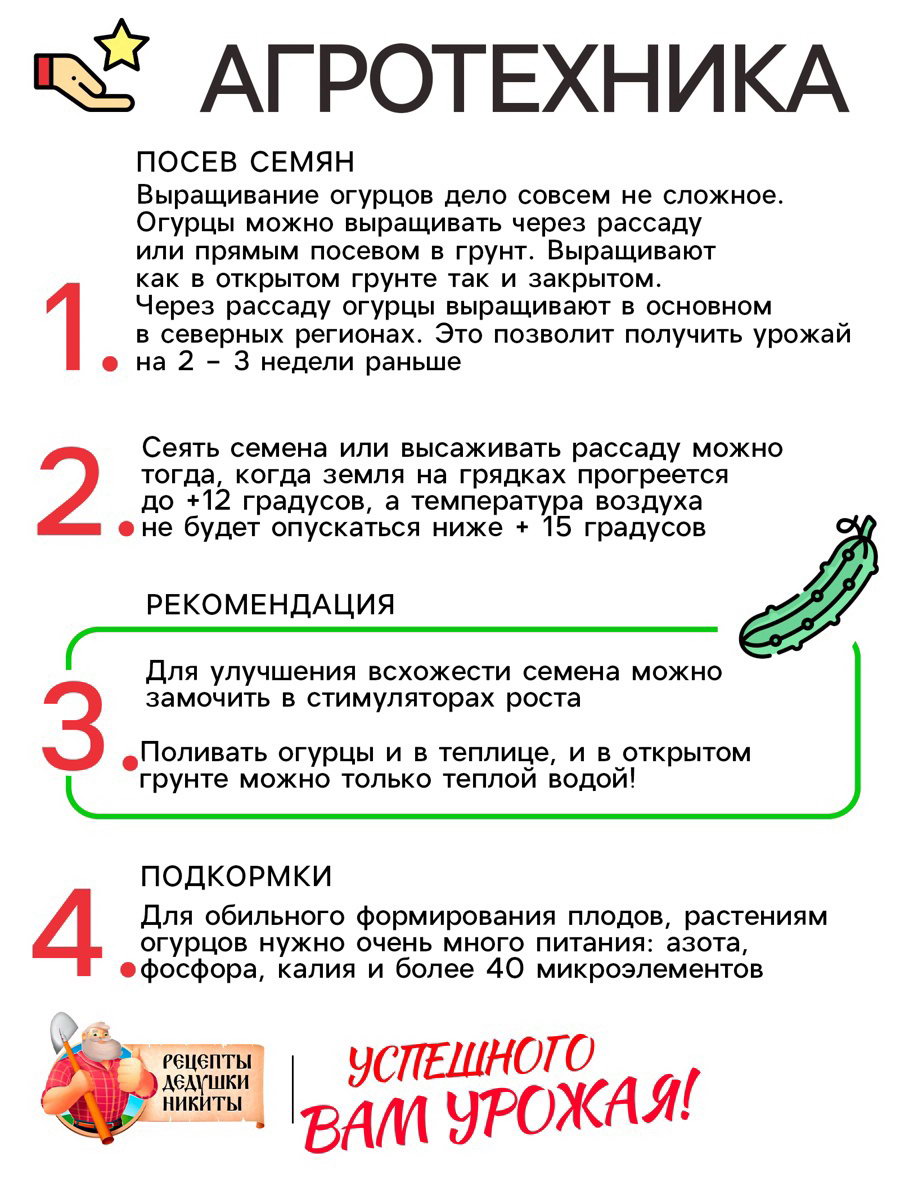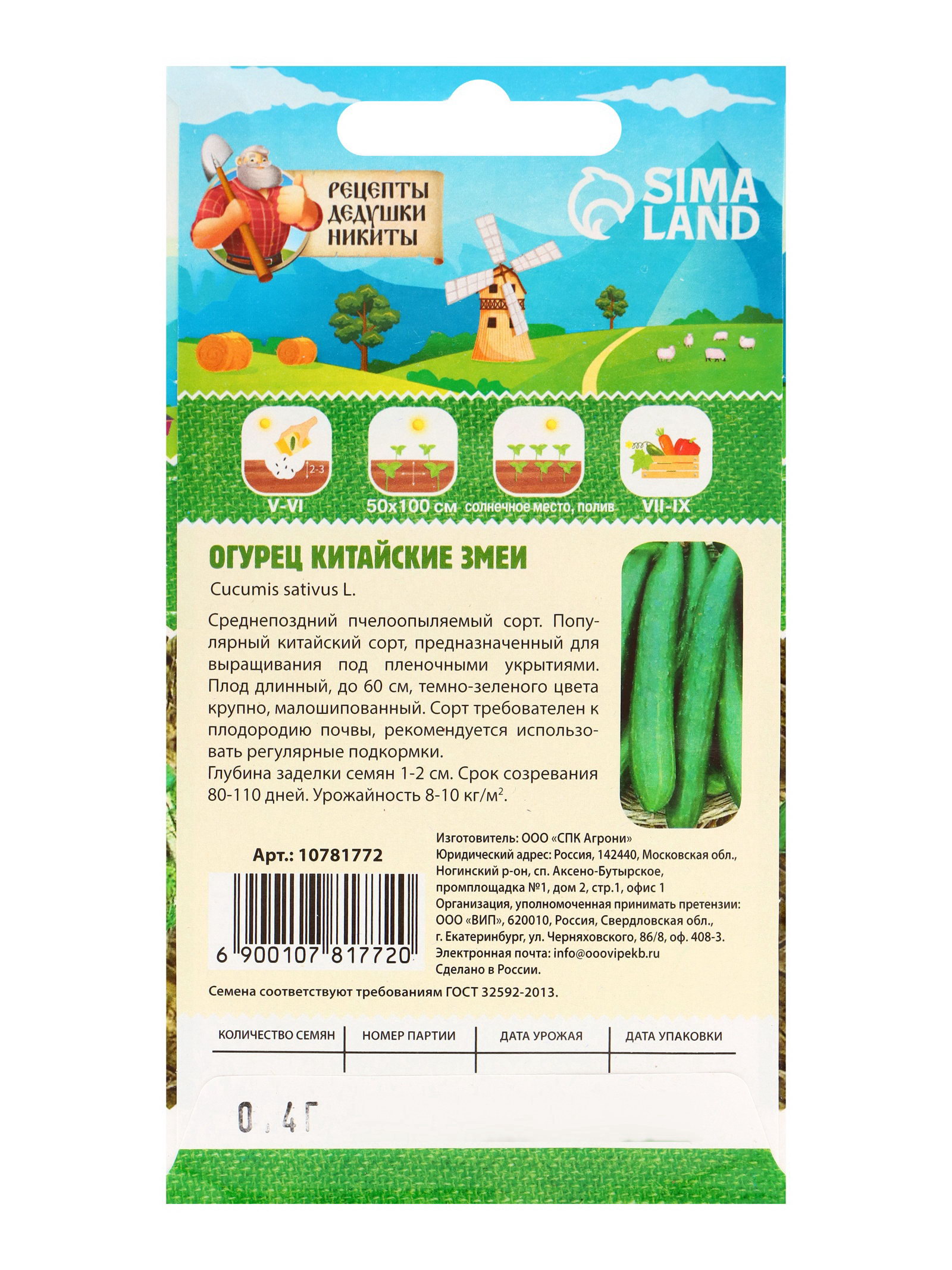 Семена Огурец "Китайские змеи", 0.4 г, 7x15x1 см., Рецепты дедушки Никиты, Россия