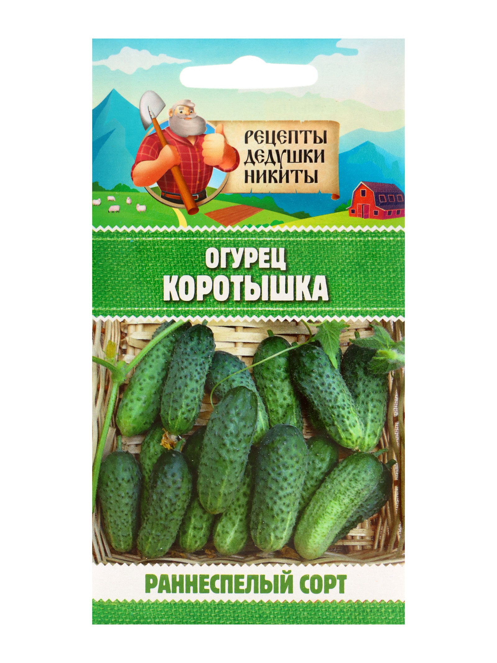 Семена Огурец "Коротышка", 0.4 г, 7x15x1 см., Рецепты дедушки Никиты, Россия