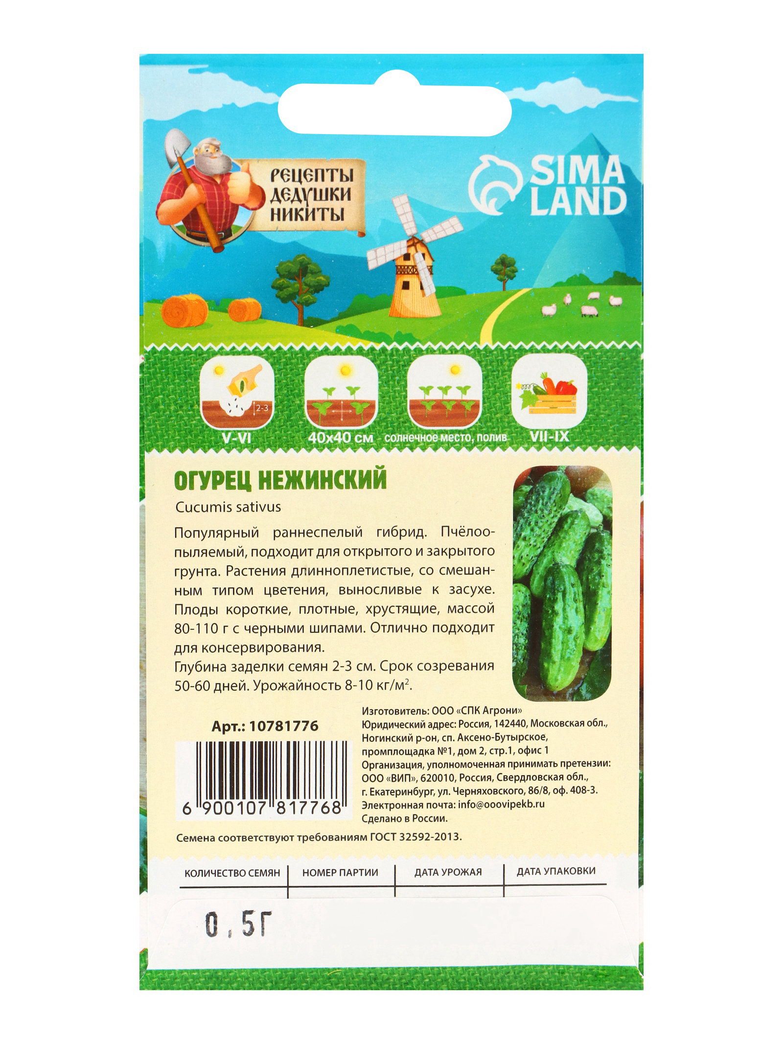 Семена Огурец "Нежинский", 0.5 г, 7x15x1 см., Рецепты дедушки Никиты, Россия