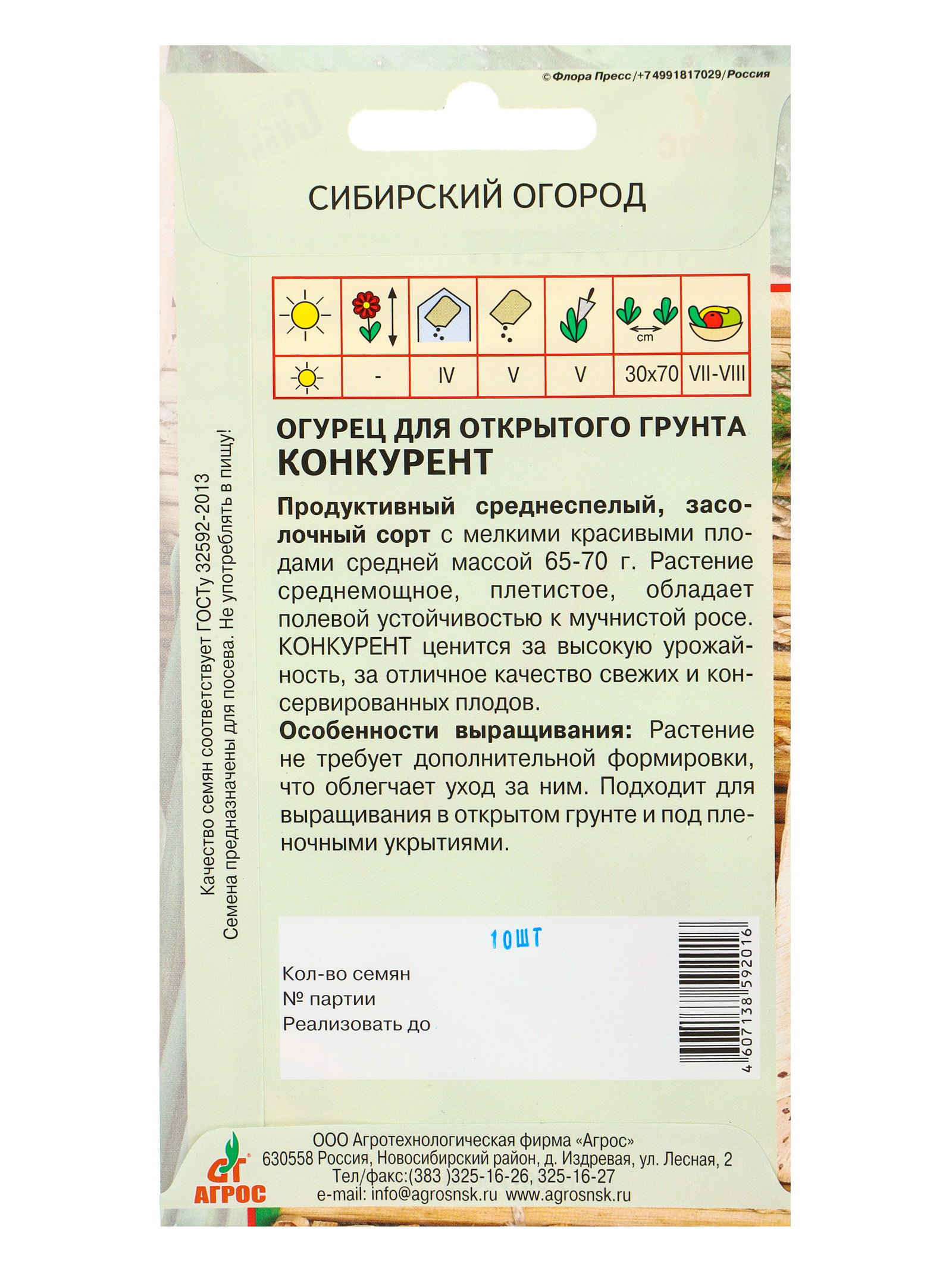 Семена Огурец "Конкурент" 10 шт, Агросс, Россия
