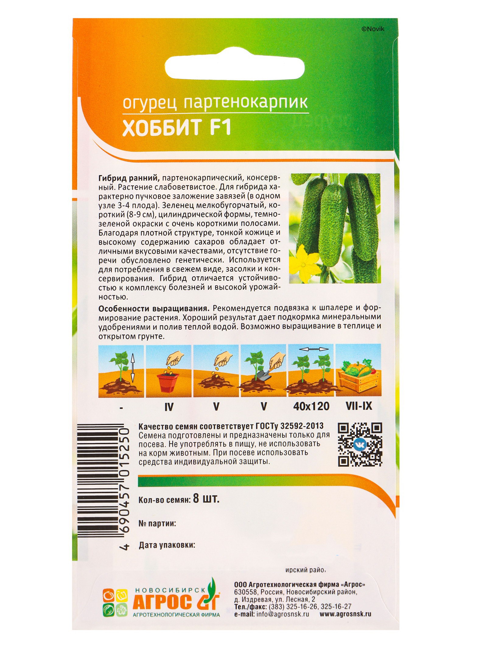 Семена Огурец "Хоббит" F1 8 шт, Агросс, Россия