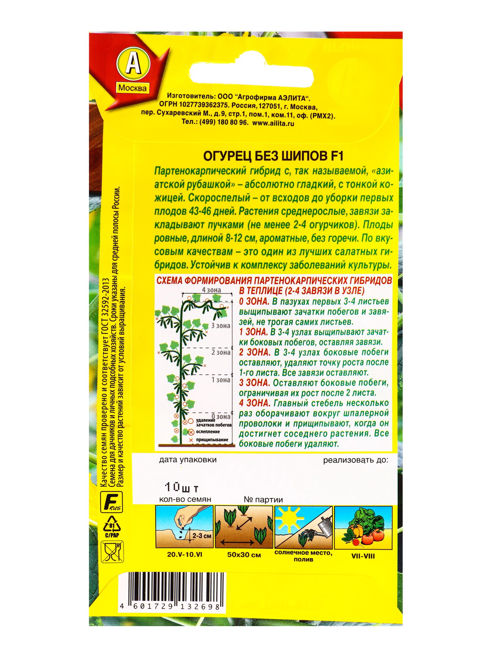 Семена Огурец Без шипов F1 Парт, Ц/П,10 шт., Агрофирма АЭЛИТА, Россия