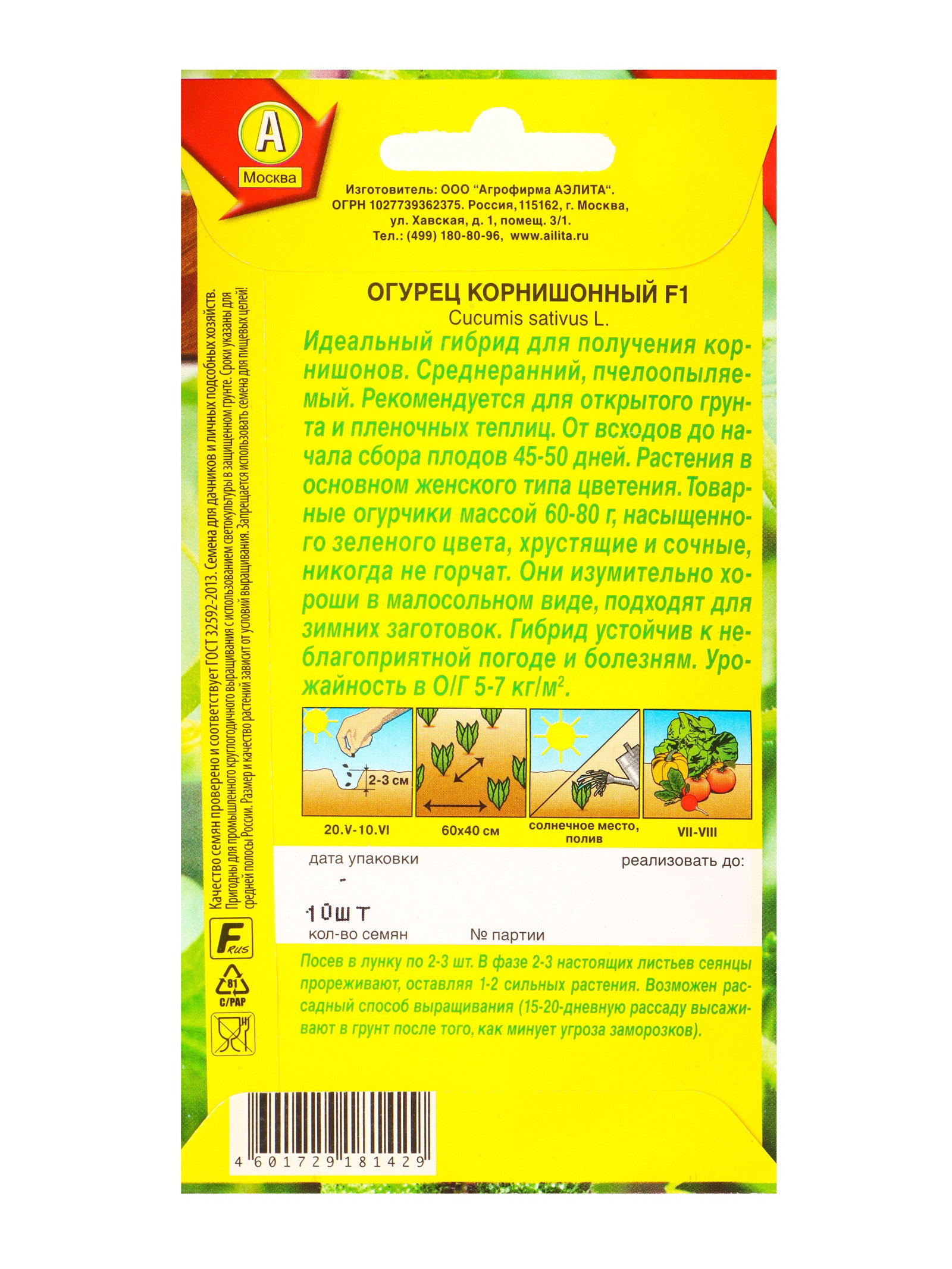 Семена Огурец Корнишонный F1 Пч, Ц/П,10 шт., Агрофирма АЭЛИТА, Россия