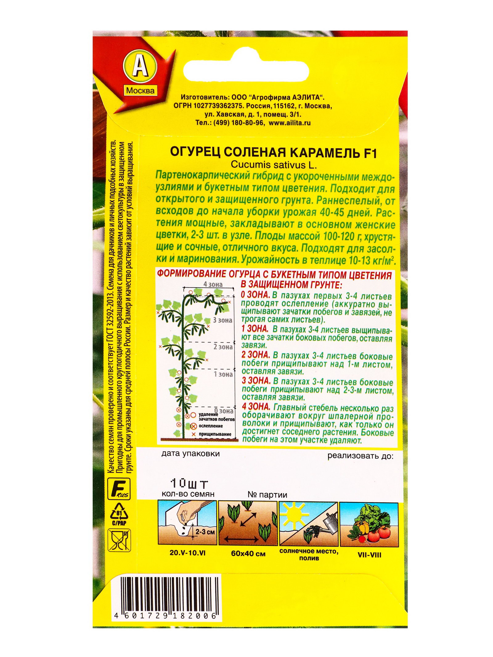 Семена Огурец Соленая карамель F1 Парт, Ц/П,10 шт., Агрофирма АЭЛИТА, Россия