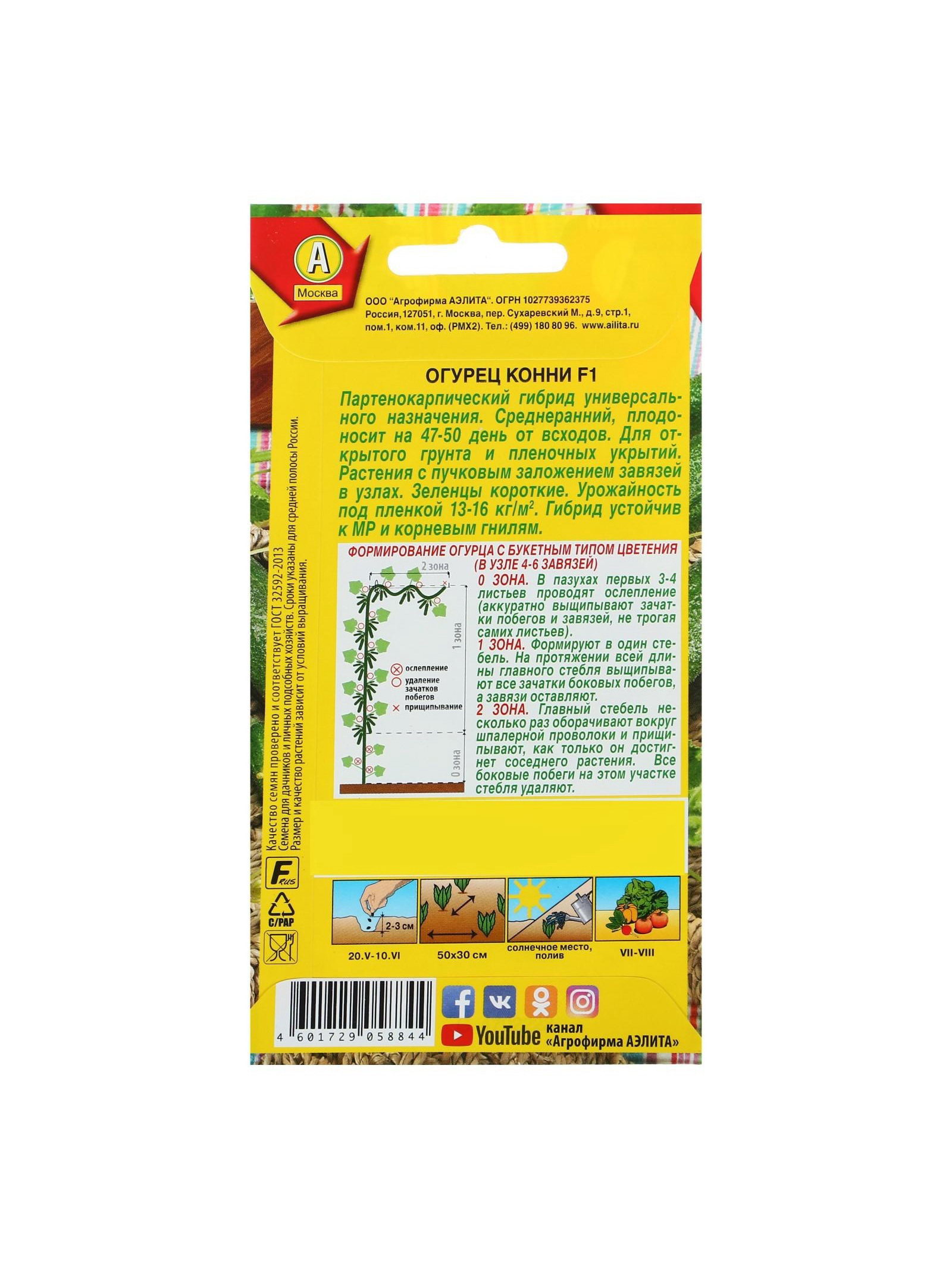 Набор семян Огурец "Конни" F1, среднеранний, партенокарпический, 5 шт., 9x17x1 см., Мой выбор, Россия