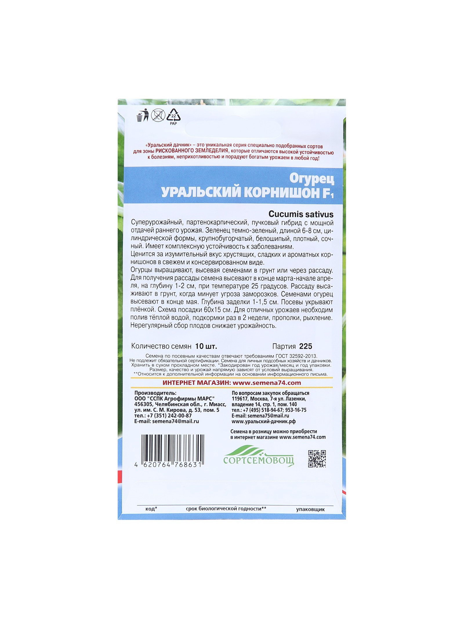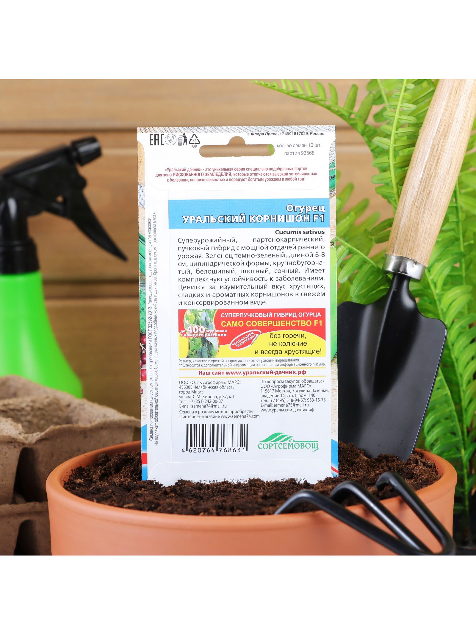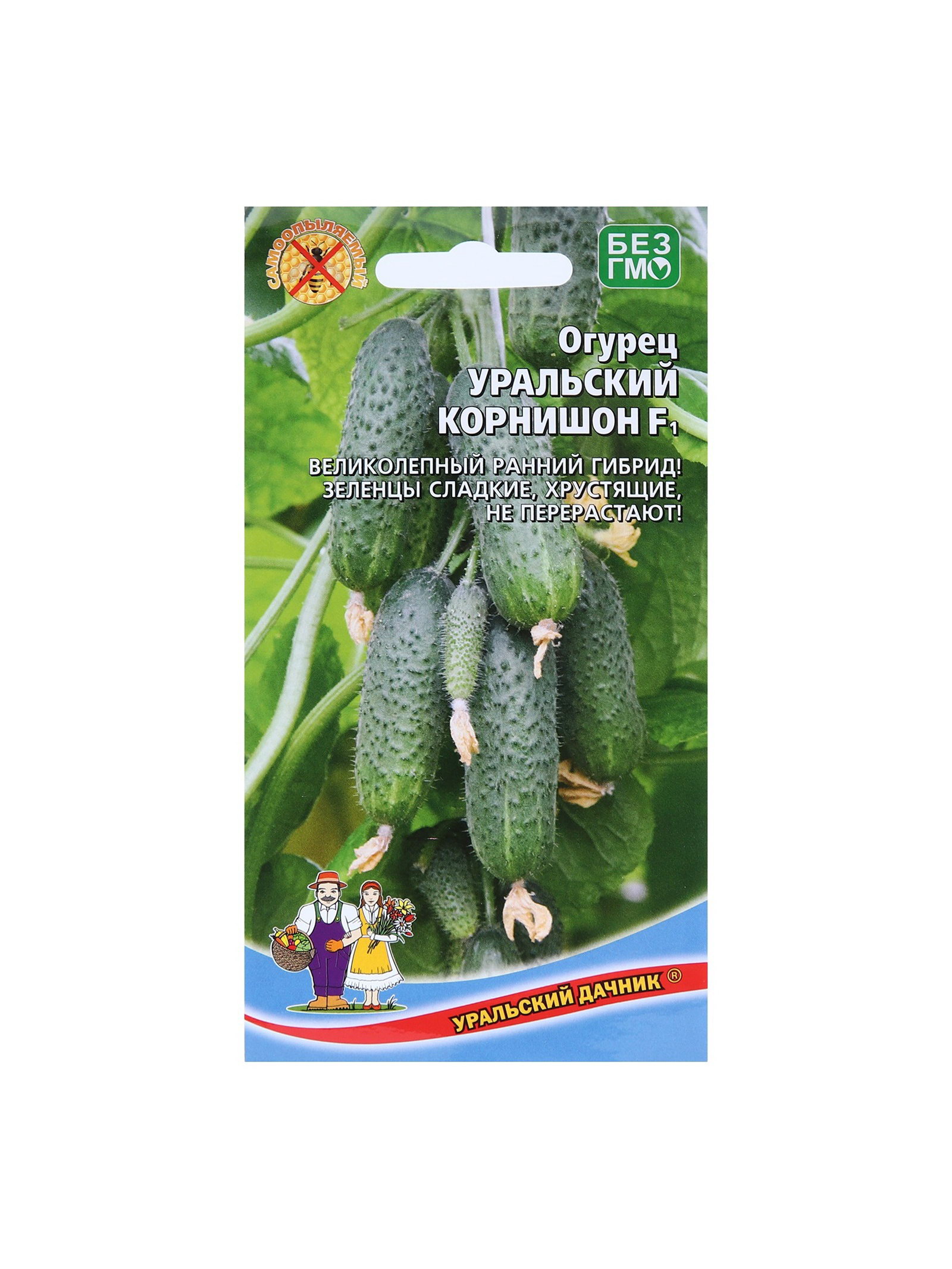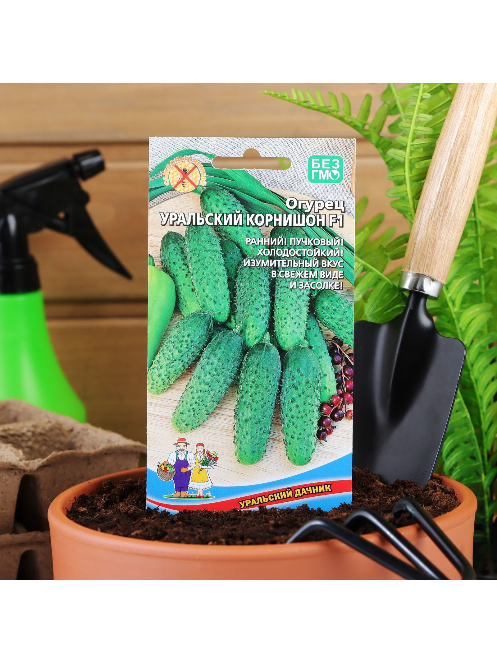 Набор семян Огурец "Уральский корнишон" F1, раннеспелый, партенокарпический, 5 шт., 9x17x1 см., Мой выбор, Россия