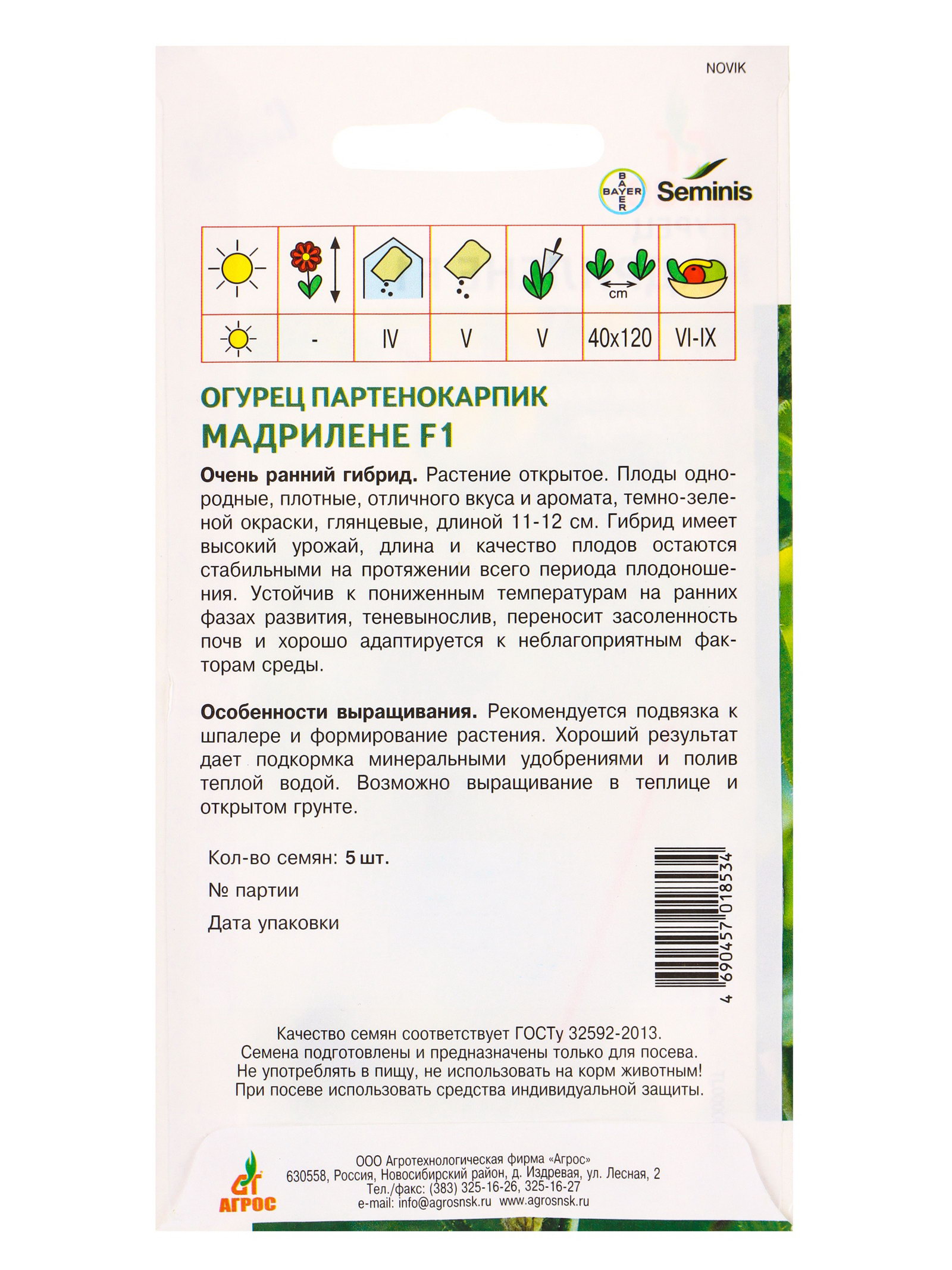 Семена Огурец "Мадрилене" F1 5 шт, Агросс, Россия