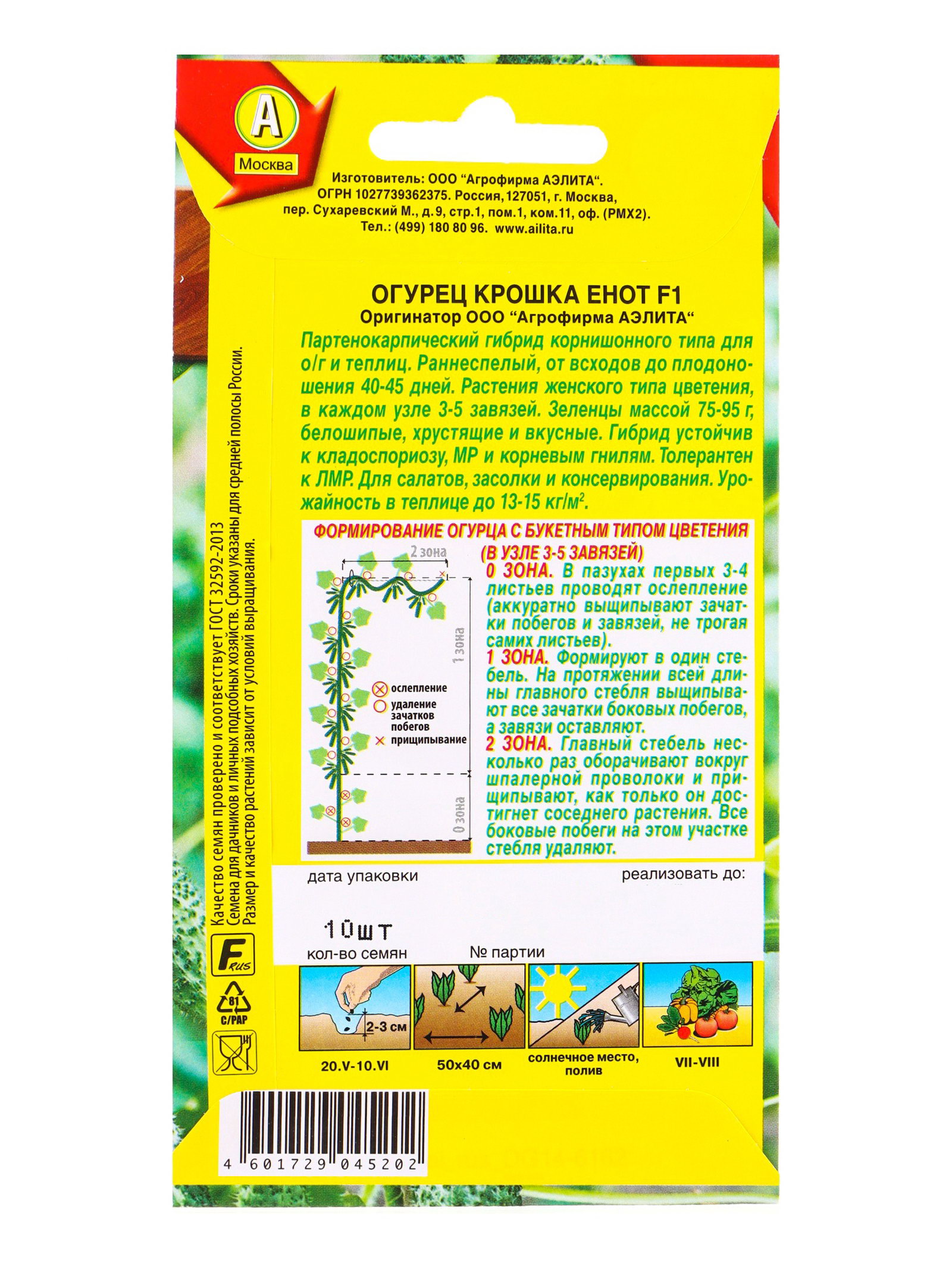 Семена Огурец "Крошка енот", партенокарпический, 10 шт., Агрофирма АЭЛИТА, Индия