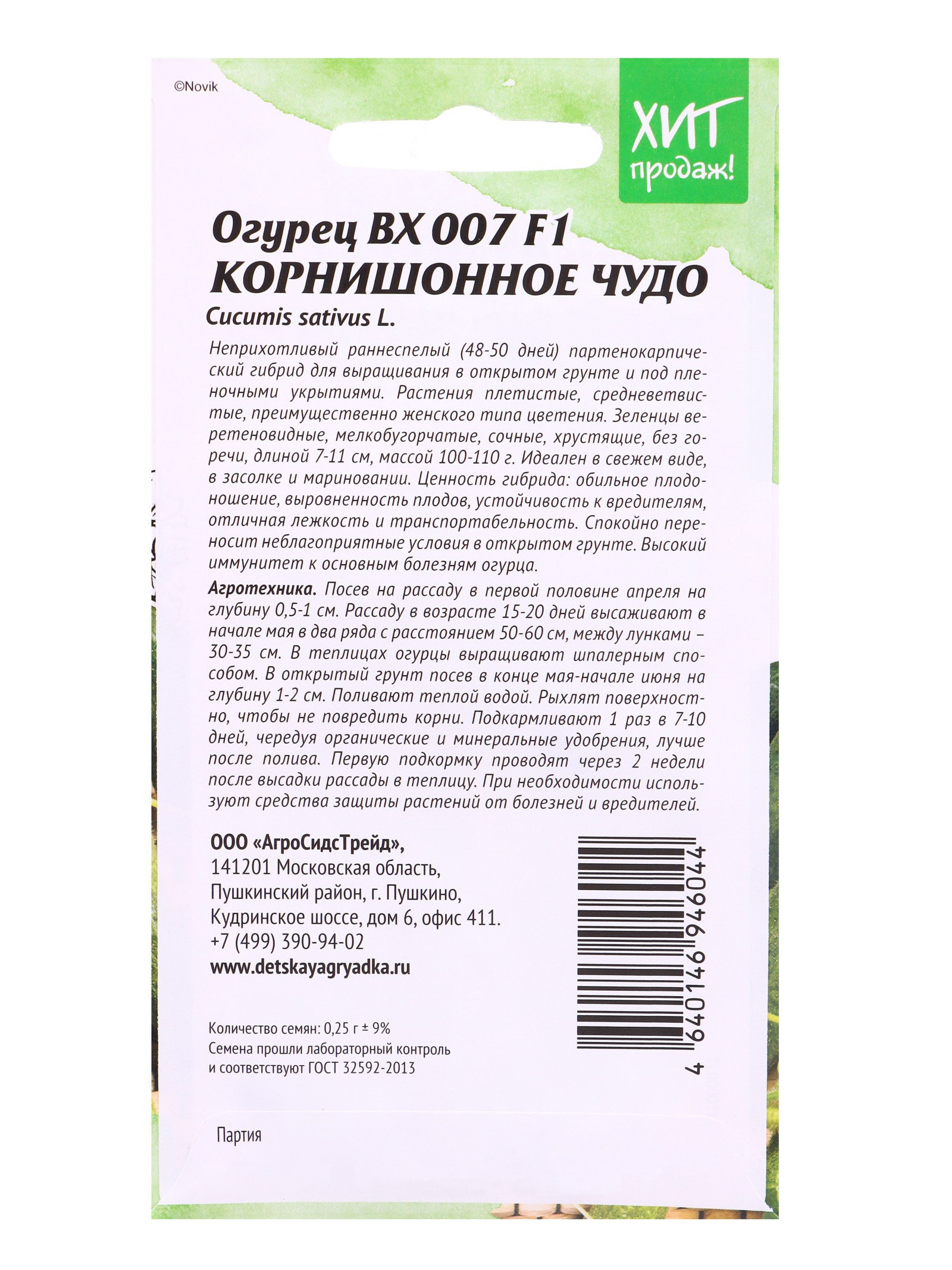 Семена Огурец ВХ 007 цв/п, Агросидстрейд, Россия