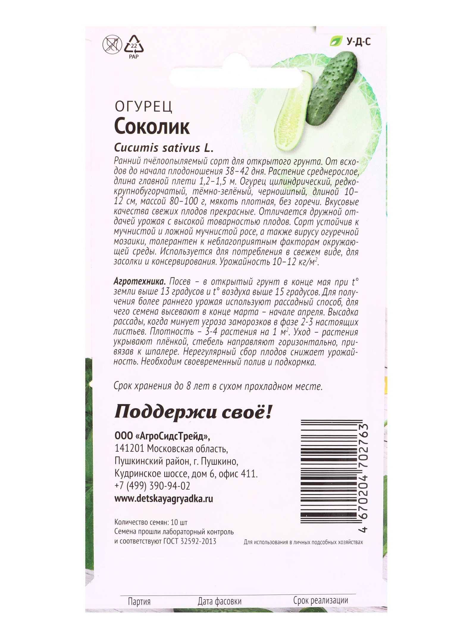 Семена Огурец Соколик 10 шт, Агросидстрейд, Россия