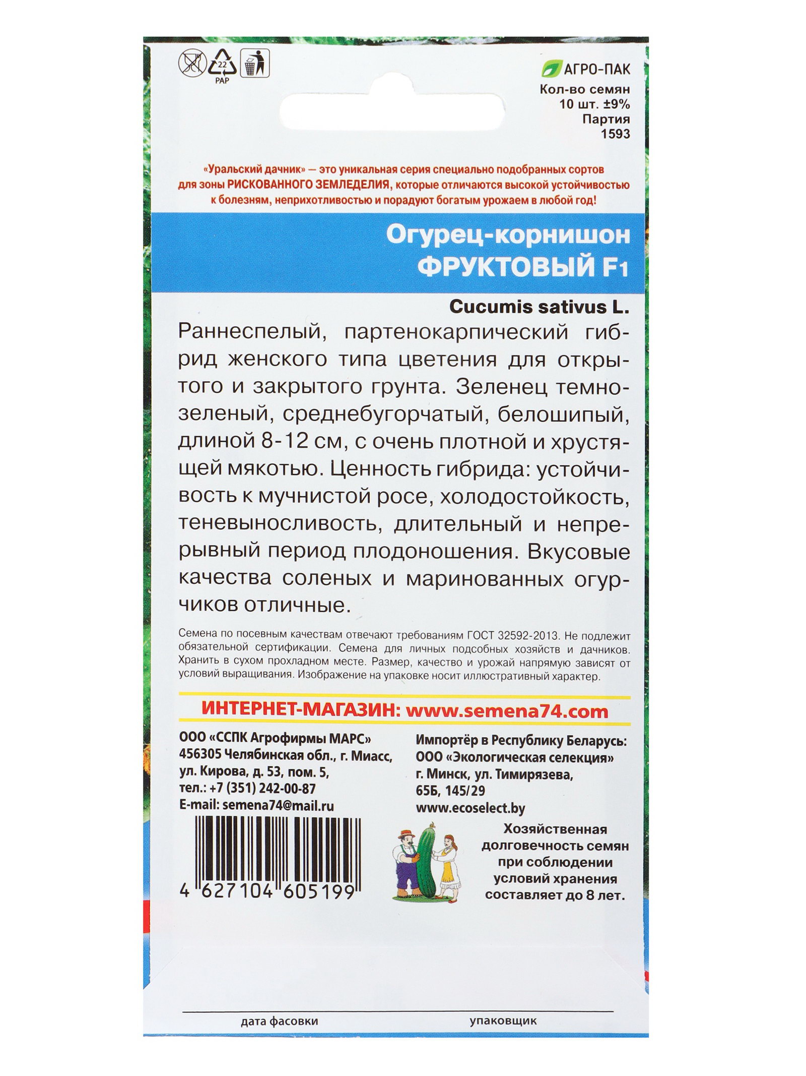 Семена Огурец "Мультифрукт F1" раннеспелый, партенокарпический гибрид 10 шт, Уральский Дачник, Россия