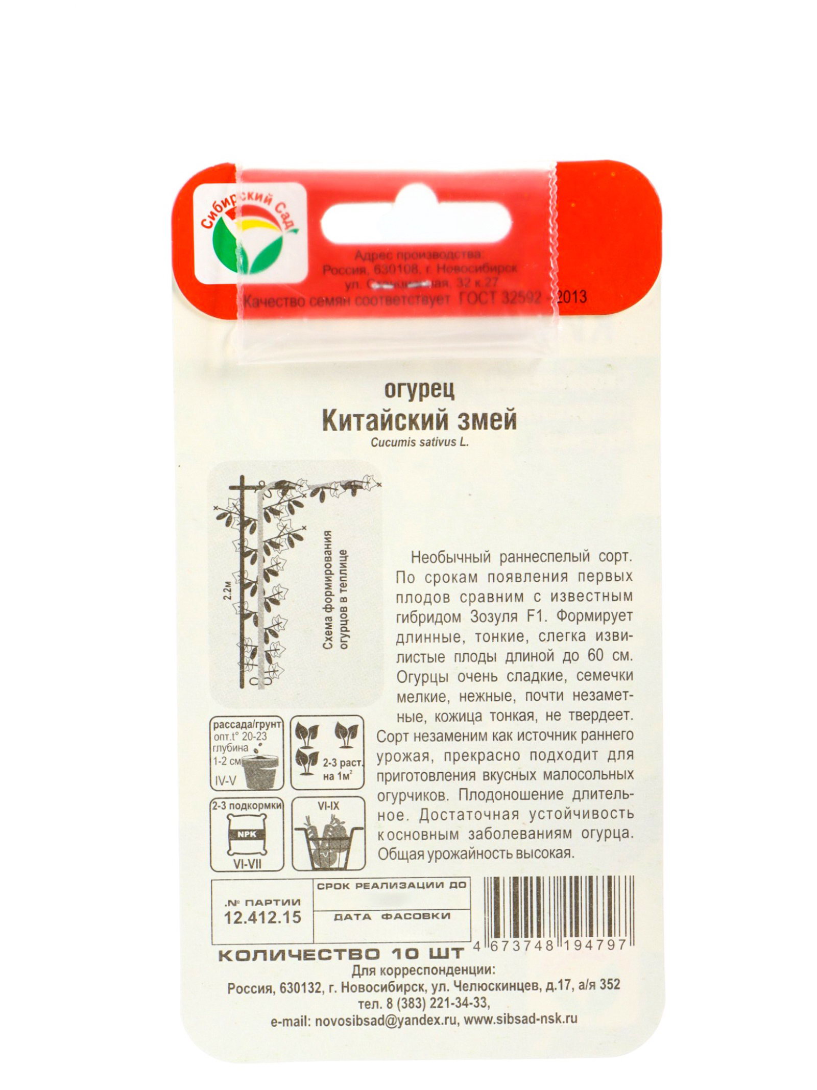 Посев (посадка) в грунт: Июль, Июнь Посев на рассаду: Апрель, Май Размер упаковки: 8 x 0.3 x 15 см. tnved: 1209999900 Запрет реализации по сегментам: 00000000578 Вид: Огурец Место выращивания: Закрытый грунт (теплицы, укрытия) Размер: Крупноплодные (свыше 22 см) см Применение: Для засолки и маринования Тип поверхности: Крупнобугорчатый Сроки созревания: Ранний ( до 48 дней) Форма: Цилиндрическая Сорт или гибрид: Сорт | ||