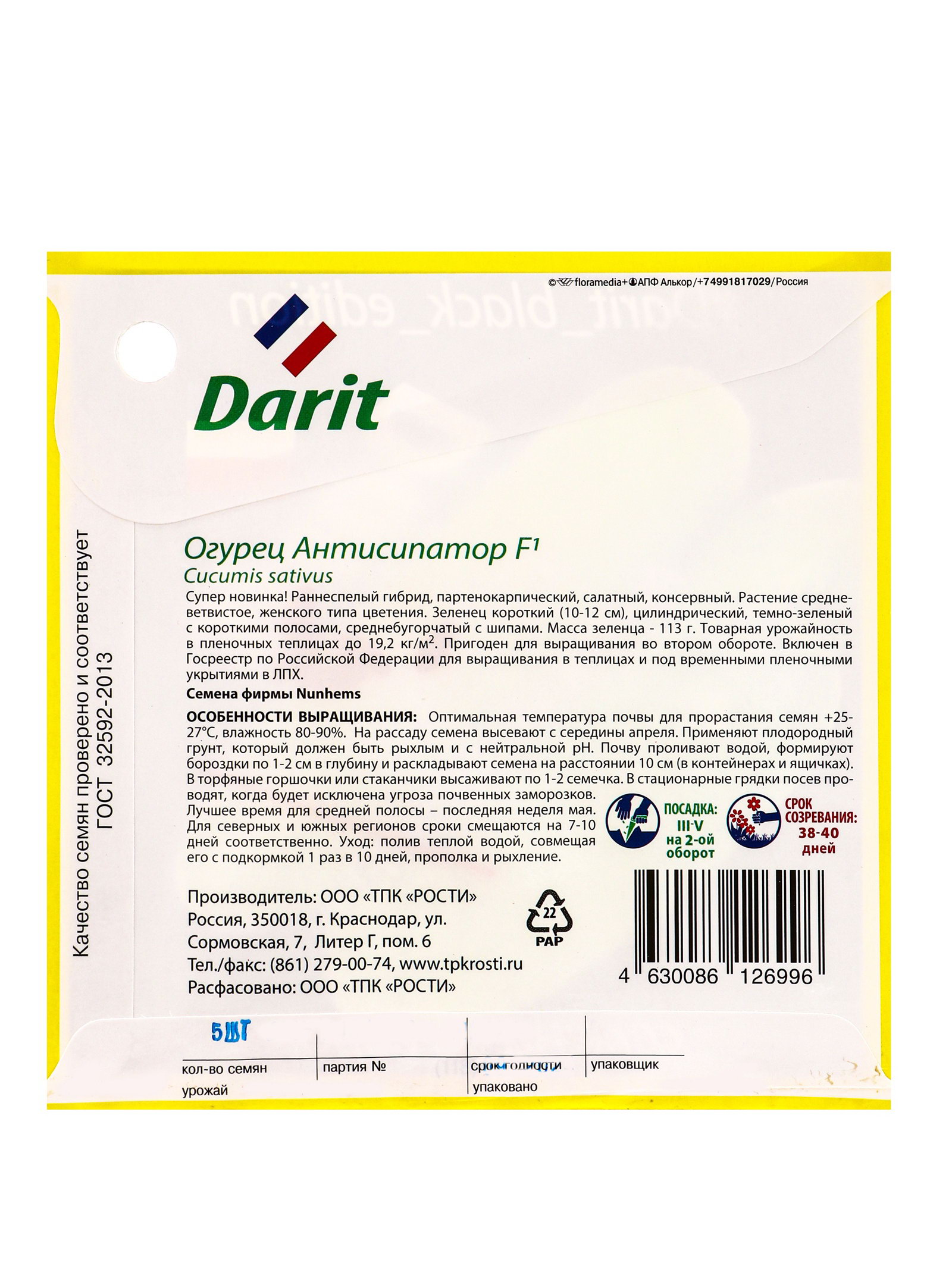 Семена Огурец Антисипатор F1 Дарит Black Edition 5шт, Агроуспех, Россия