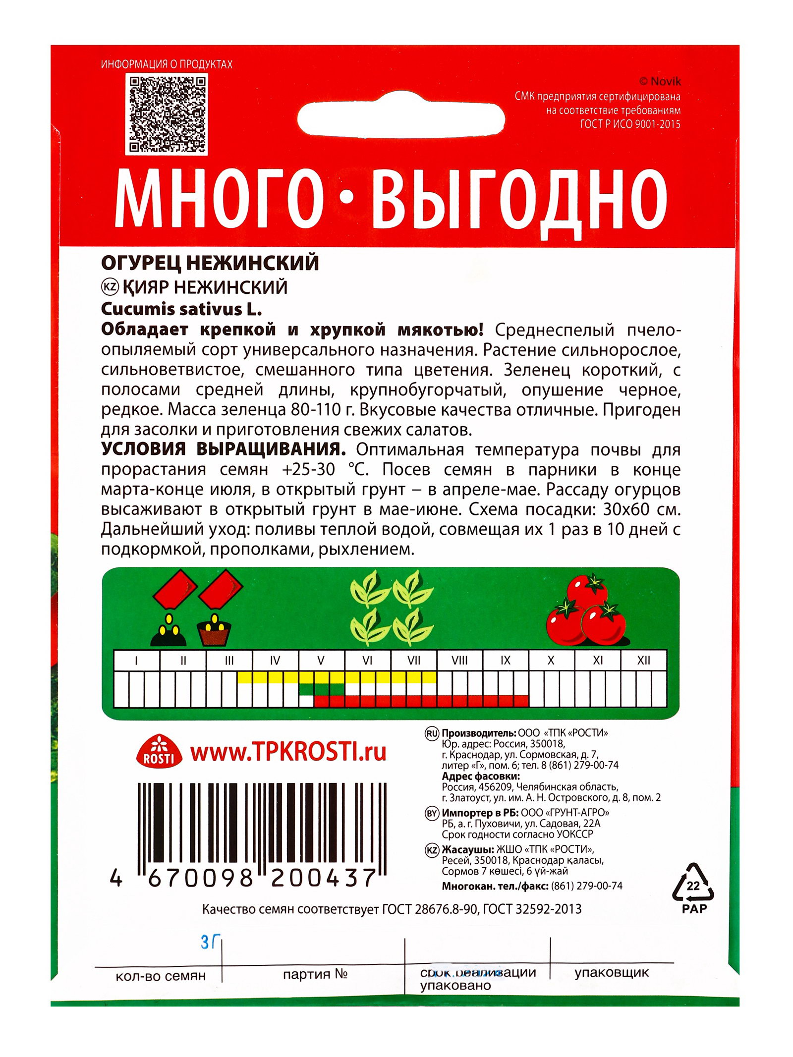 Семена Огурец Нежинский Много-Выгодно 3г, Агроуспех, Россия