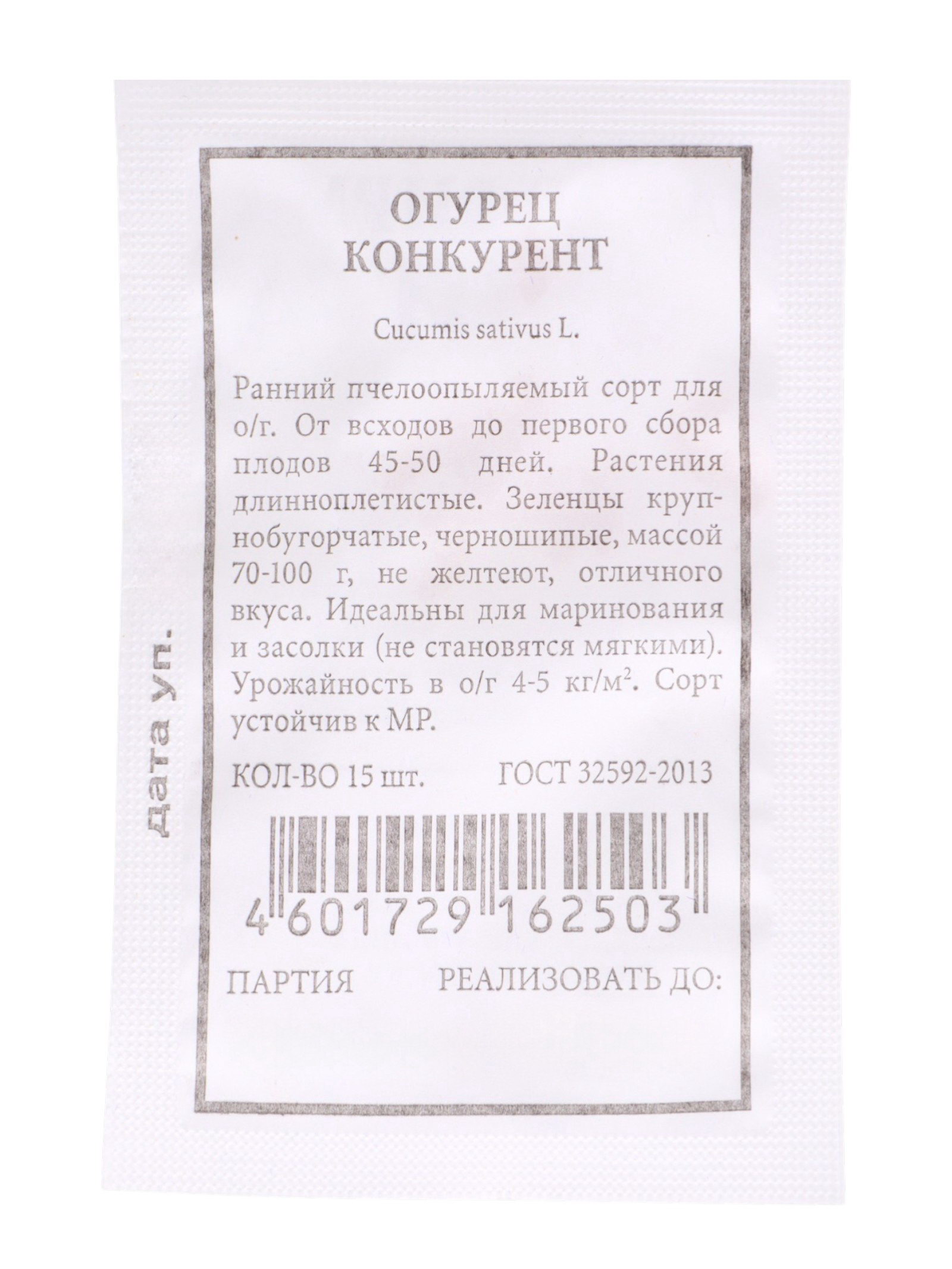 Семена Огурец "Конкурент", 15 шт., 5x14x0.1 см., Россия