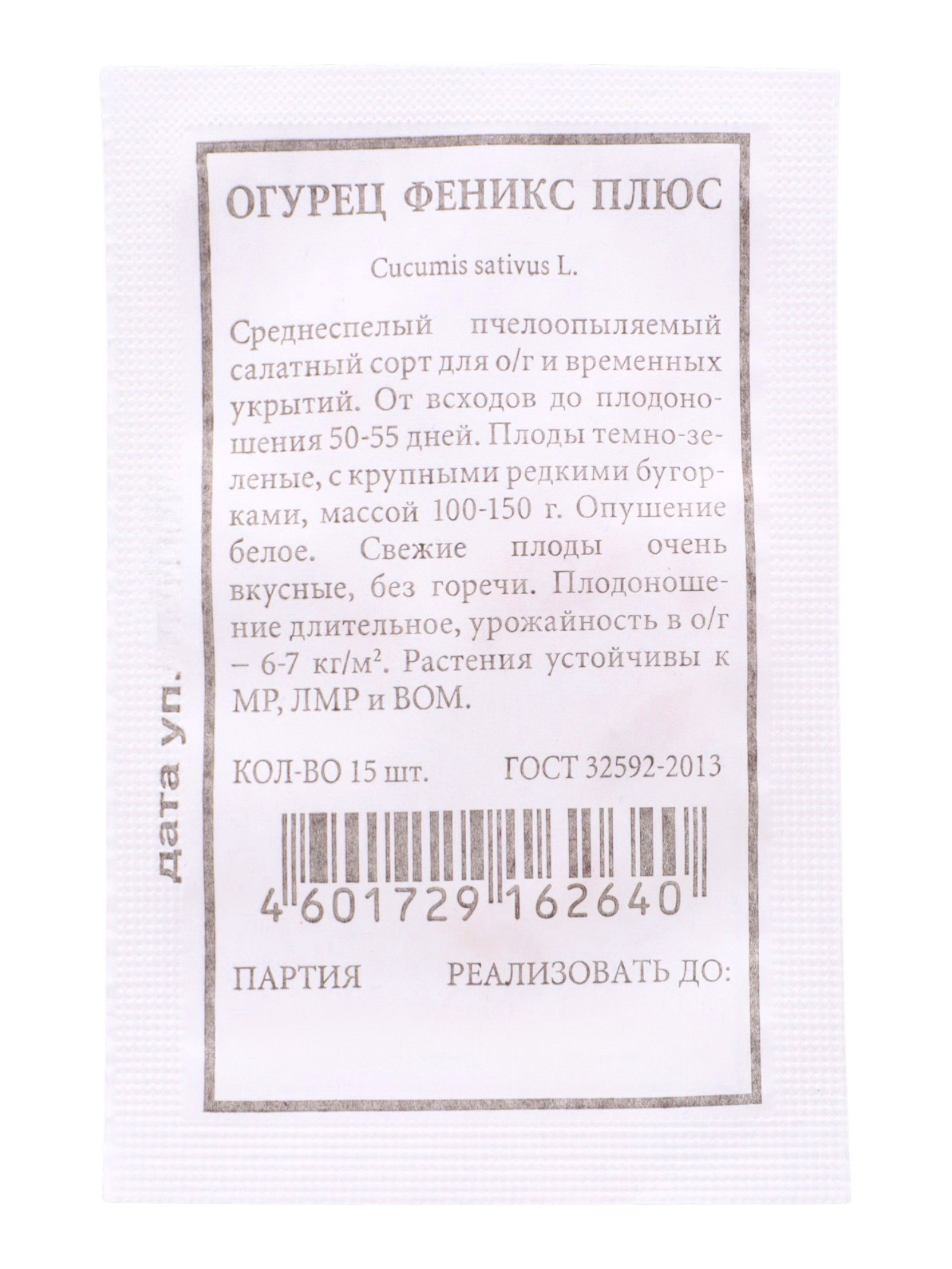 Семена Огурец "Феникс плюс", 15 шт., 5x14x0.1 см., Россия