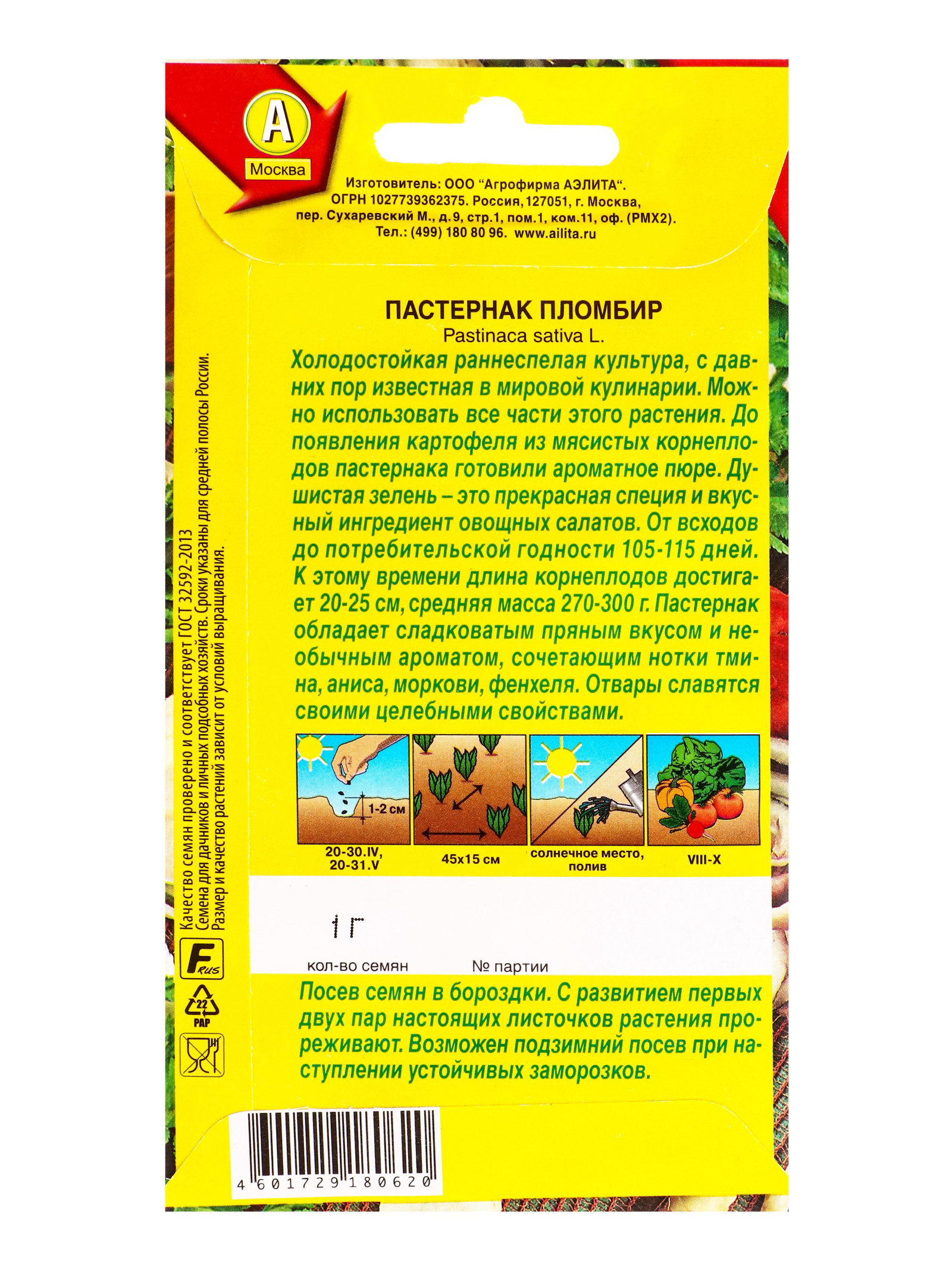 Семена Пастернак Пломбир, Ц/П,1 г, Агрофирма АЭЛИТА, Россия