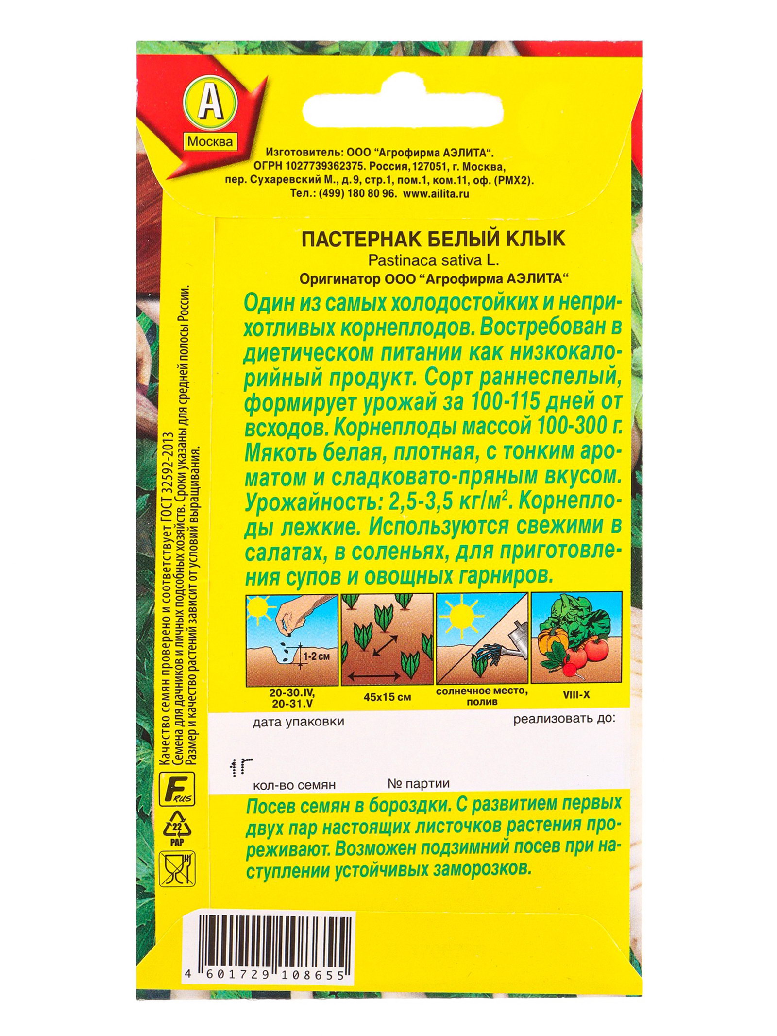 Семена Пастернак Белый клык Ор. А, Ц/П,1 г, Агрофирма АЭЛИТА, Нидерланды