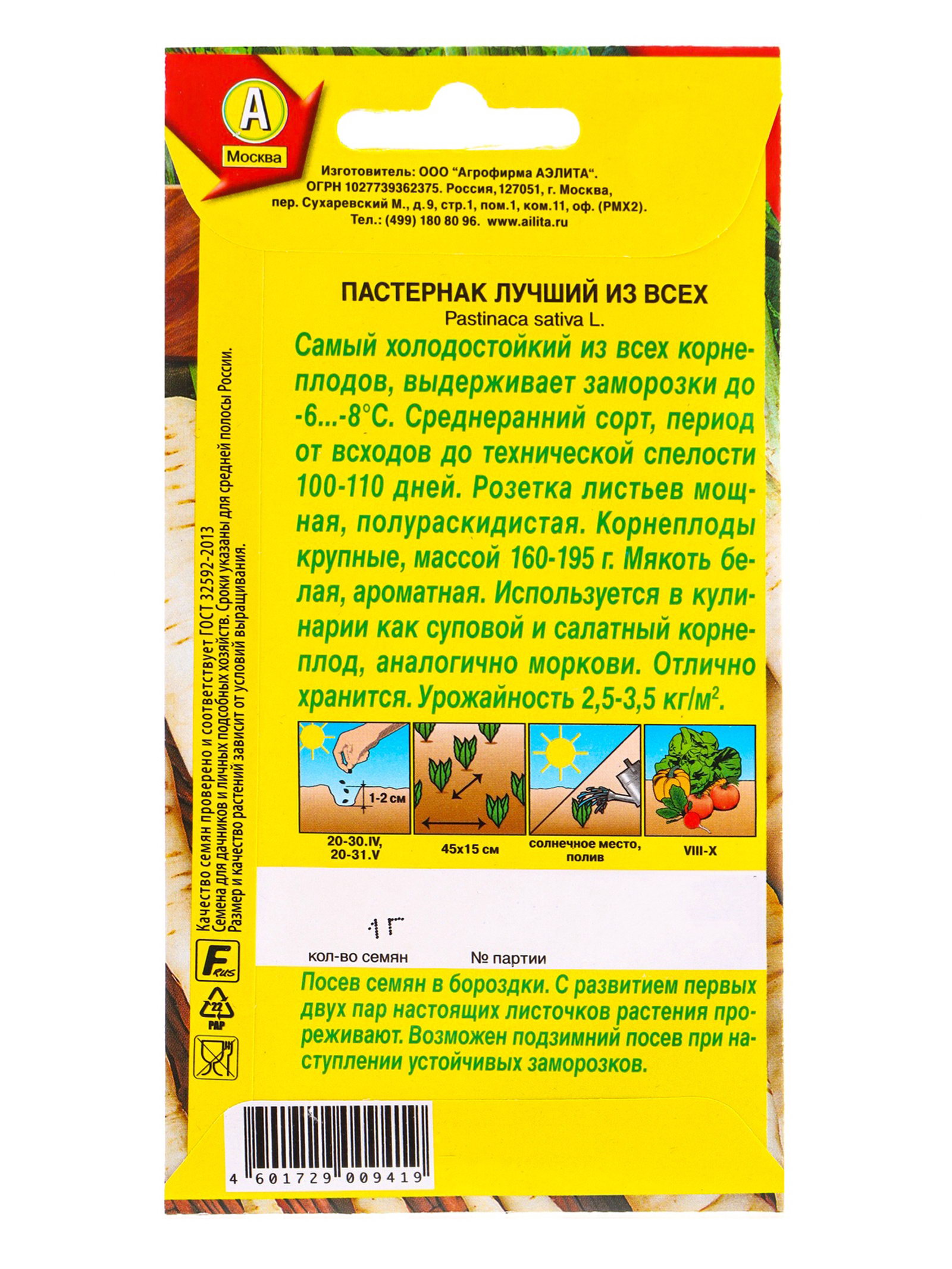 Семена Пастернак Лучший из всех, Ц/П,1 г, Агрофирма АЭЛИТА, Нидерланды