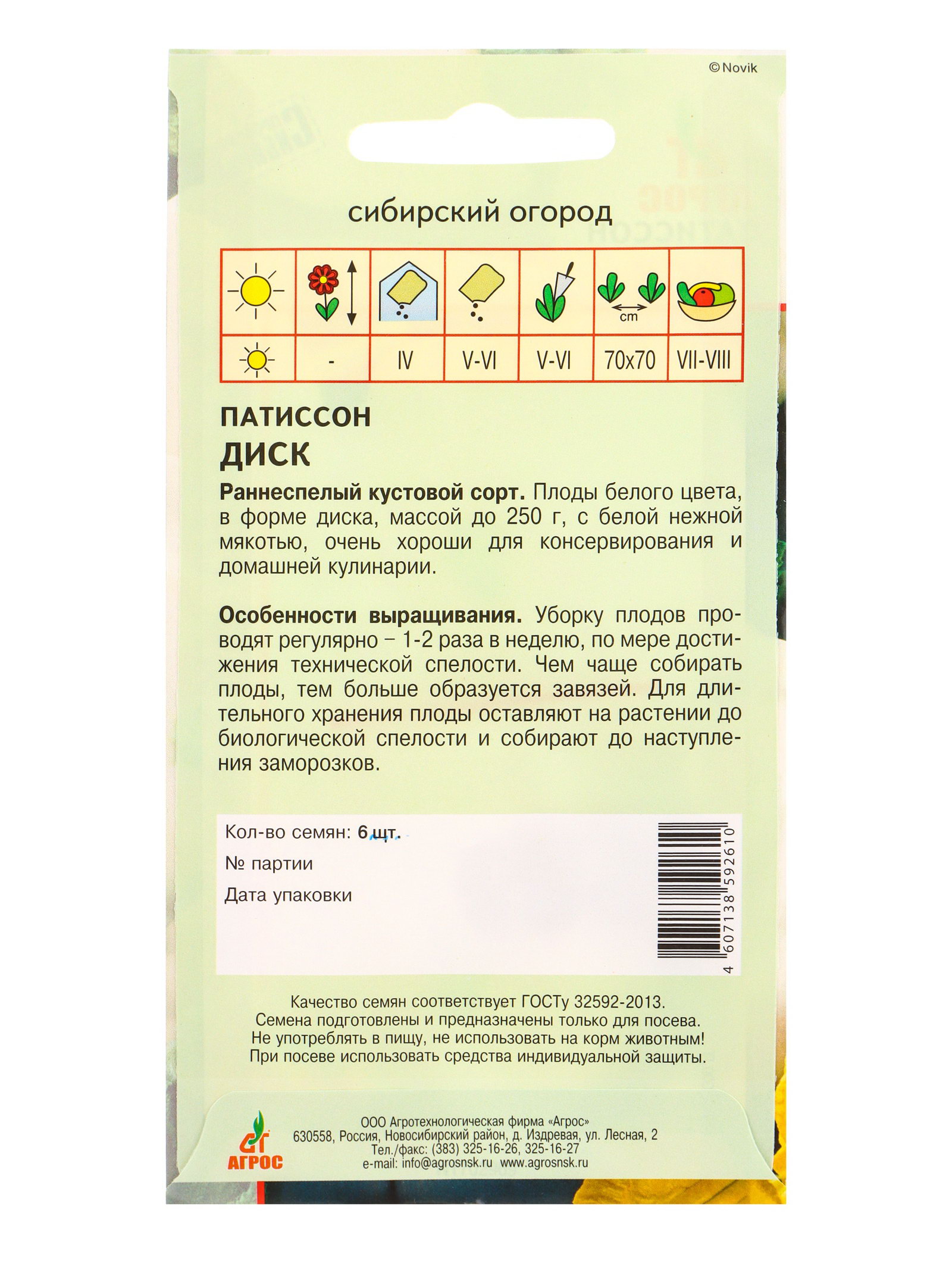 Семена Патиссон "Диск" 6 шт, Агросс, Россия